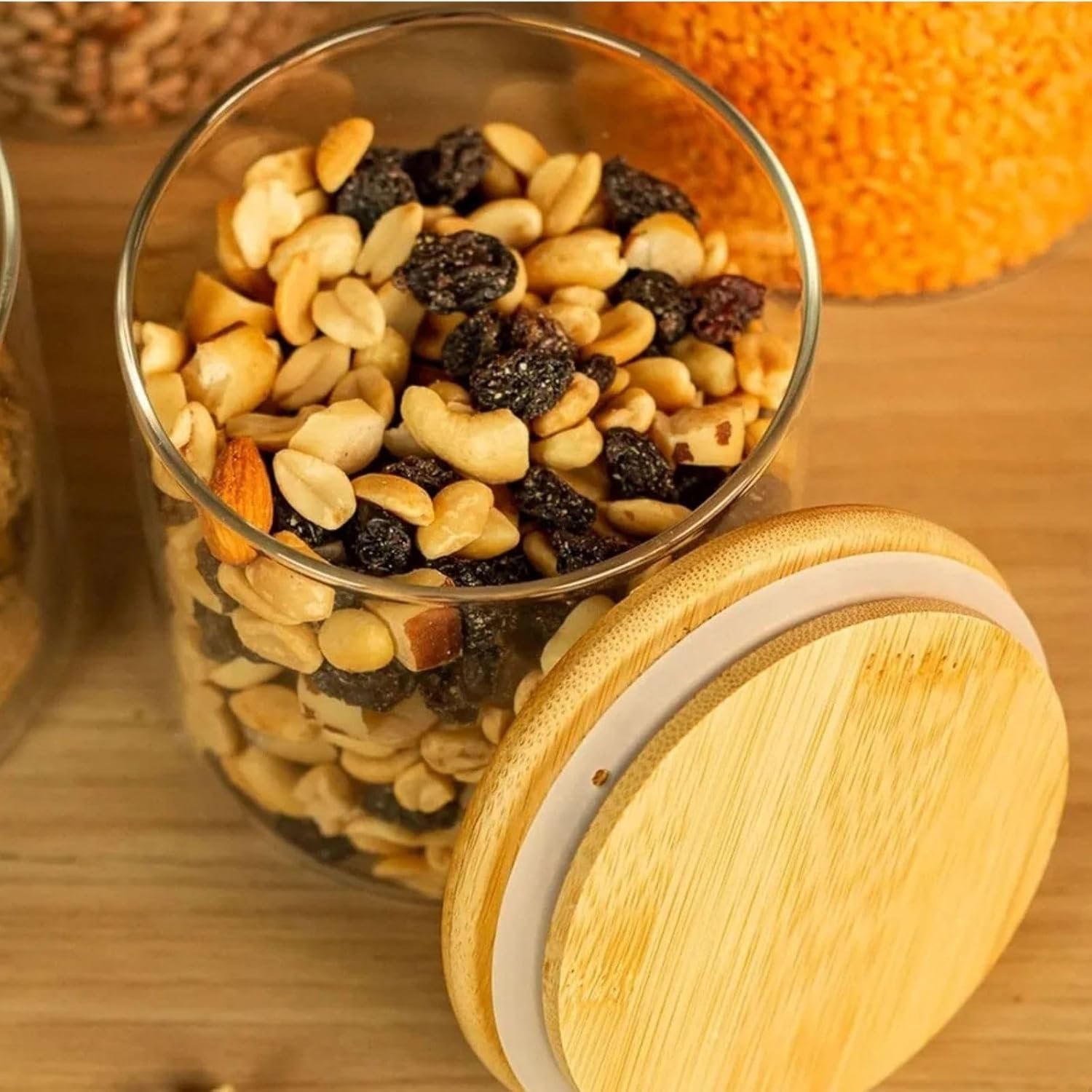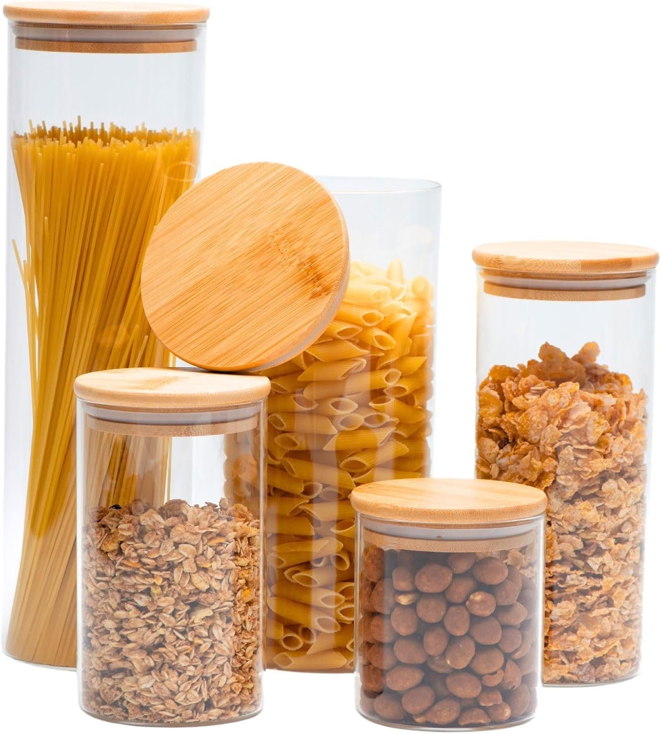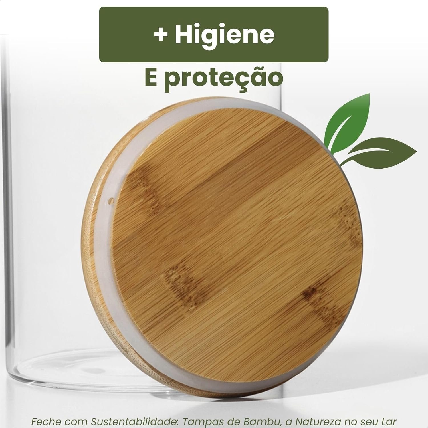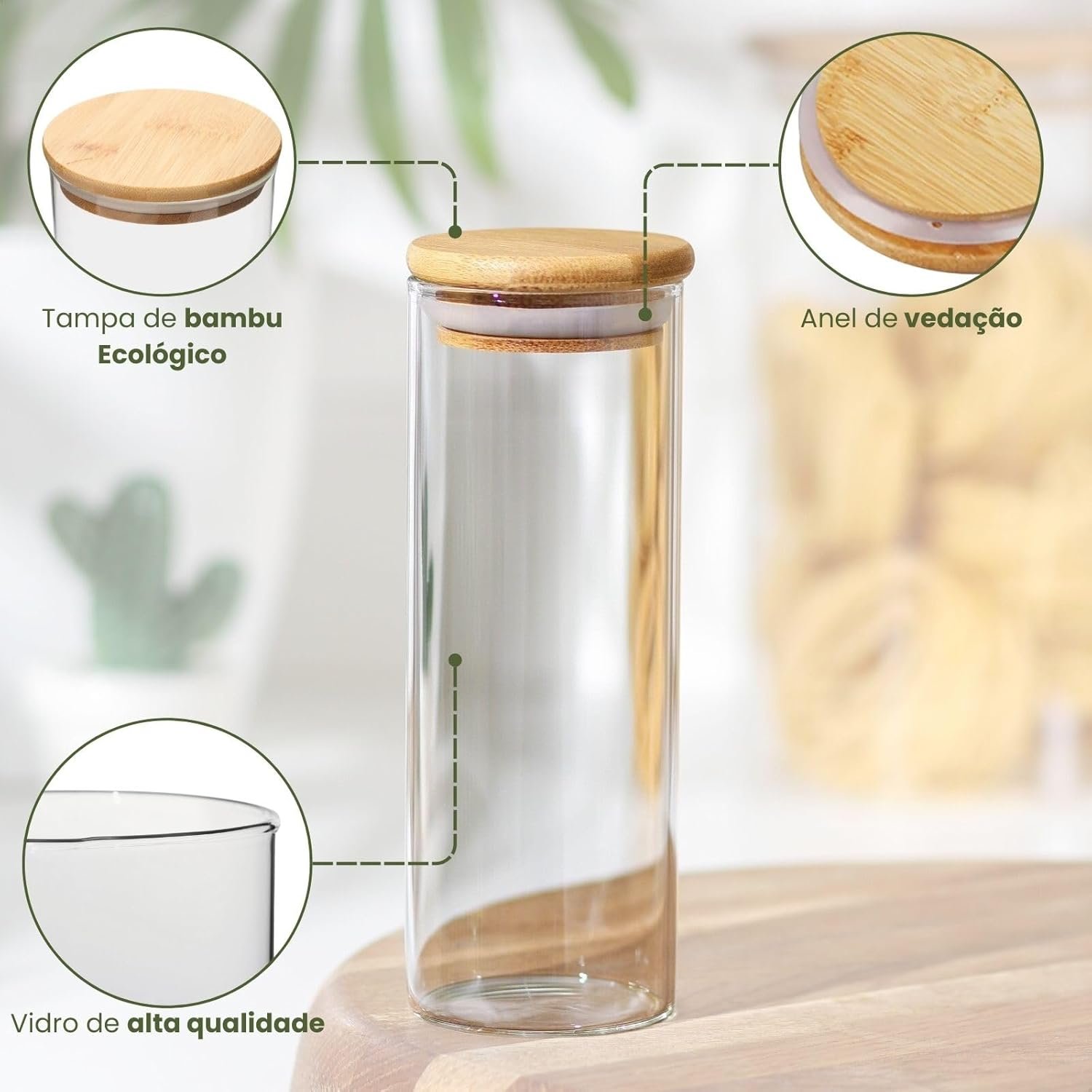 Título do Produto: Potes Herméticos de Vidro com Tampa Bambu Porta Mantimentos Transparente Kit 5 Unidades