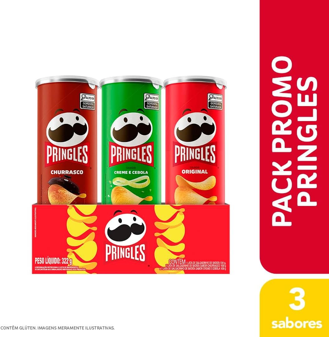 Pringles Pack Promo Salgadinho de Batata Frita 3 Sabores – Original, Creme e Cebola e ChurrascoPringles Pack Promo Salgadinho de Batata Frita 3 Sabores – Original, Creme e Cebola e Churrasco