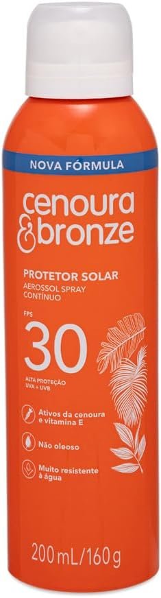 Proteja sua pele com o inovador Protetor Solar Aerossol Spray FPS 30 Cenoura & Bronze 200ml. Desfrute de uma proteção eficaz contra os raios solares, mantendo sua pele saudável e radiante. Sua fórmula leve e de rápida absorção oferece conforto e praticidade, ideal para o seu dia a dia. Aproveite o melhor do sol com segurança!