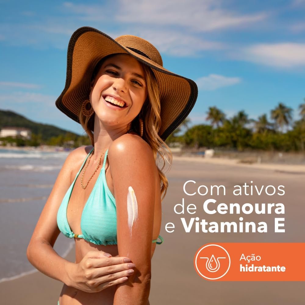 Proteção Solar com Efeito Bronzeado: Protetor Solar FPS 50 Cenoura & Bronze 200ml