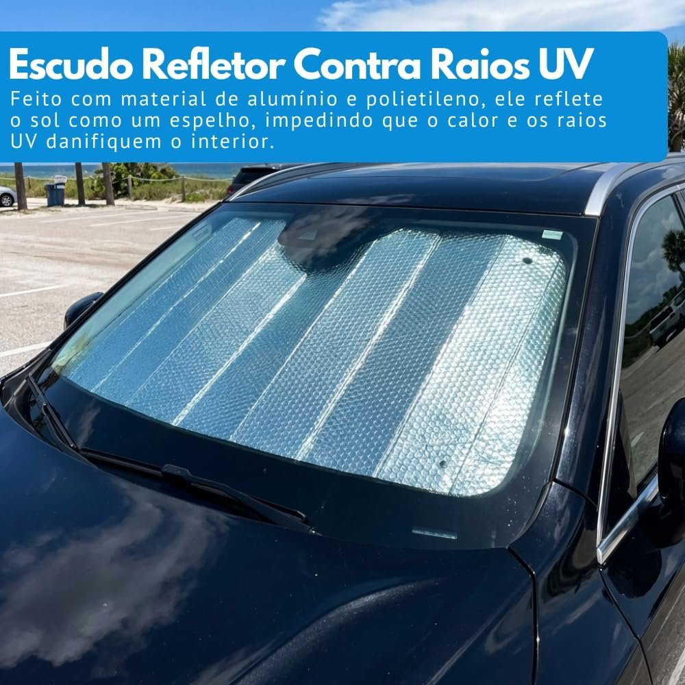 Protetor Solar Para-brisa Automotivo Quebra Sol Retrátil Dobrável Universal 130x60cm Proteção UV Isolamento Térmico Reduz Calor Interno do Carro Preservando o Interior do Veículo