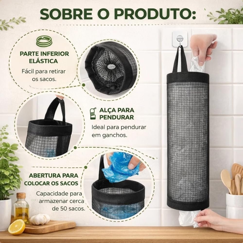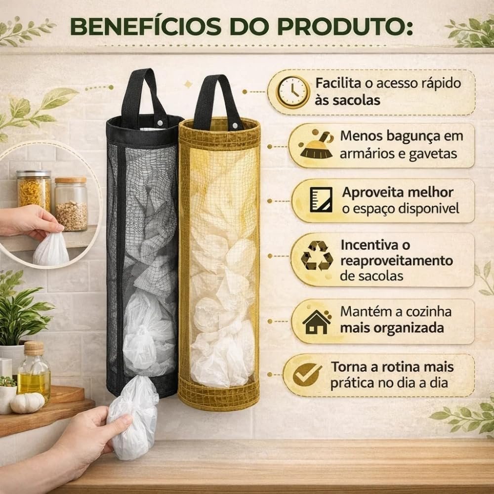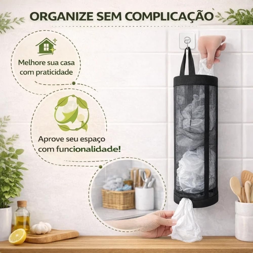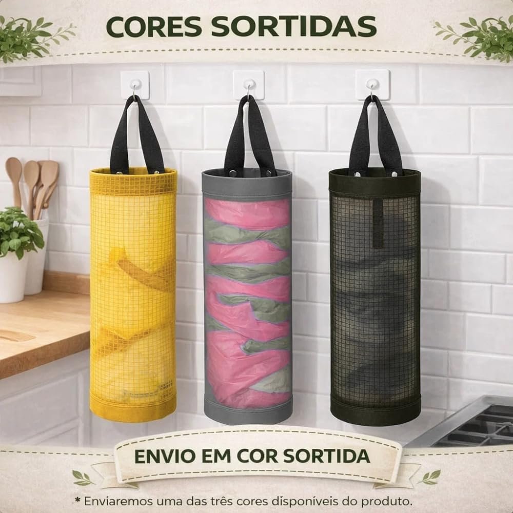 Puxa Saco Porta Sacolas Plásticas Organizador de Cozinha Compacto Resistente Fácil de Pendurar Armazena Sacolas sem Bagunça Acessório Prático Cor Sortida