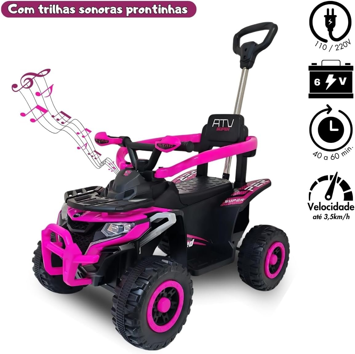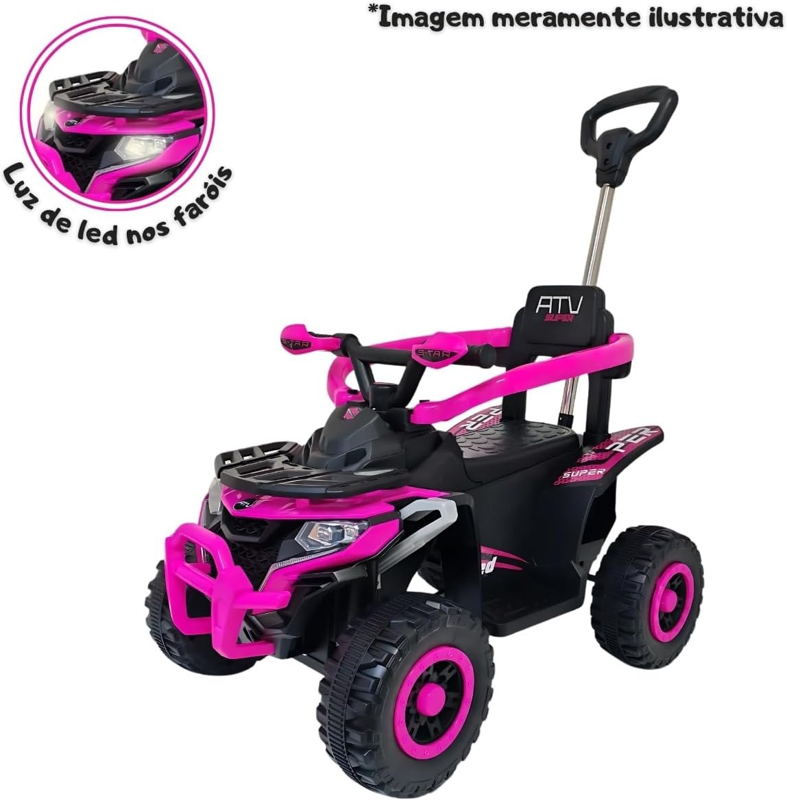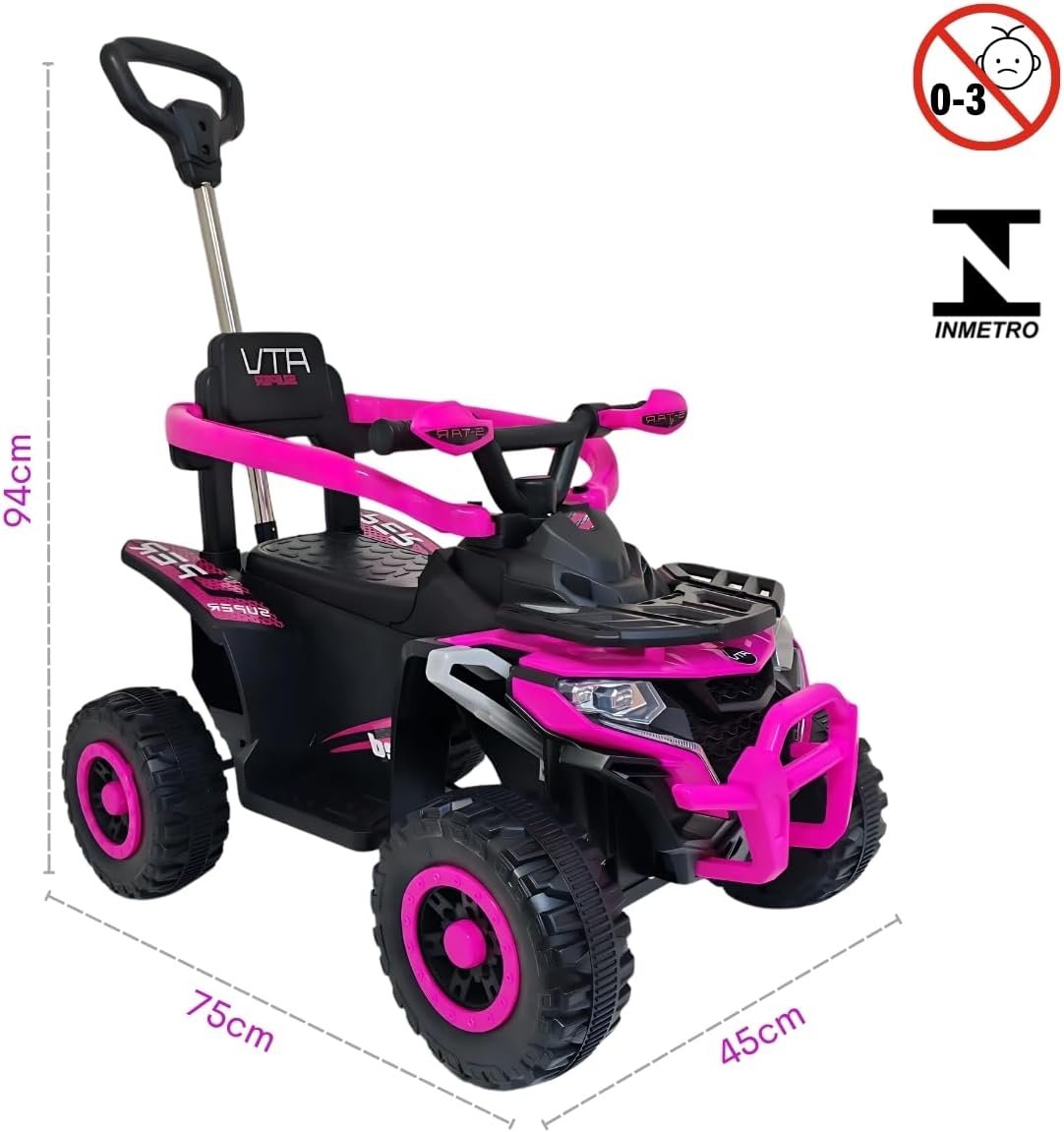 Quadriciclo Elétrico Infantil com Haste Direcionável Som e Luz (Rosa)