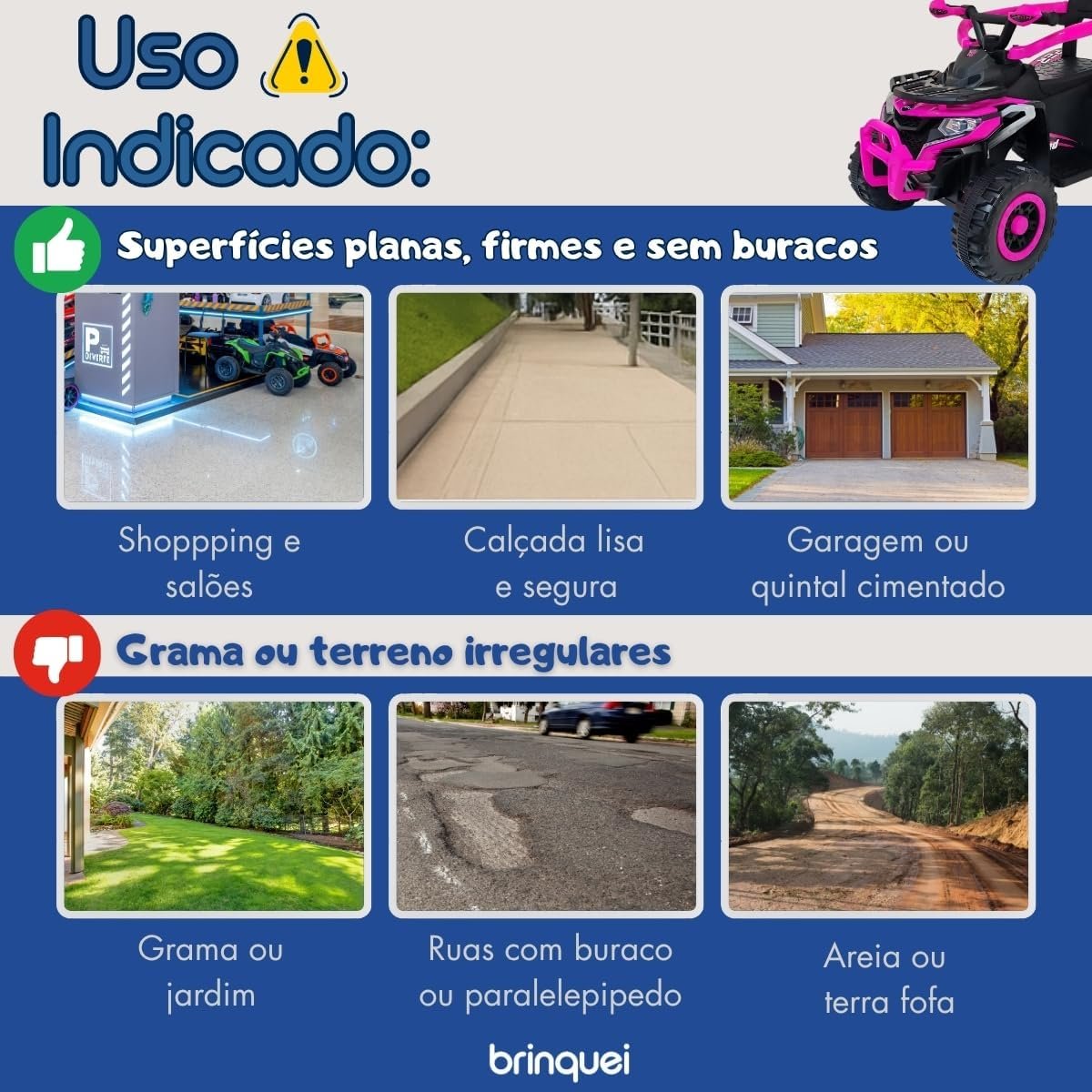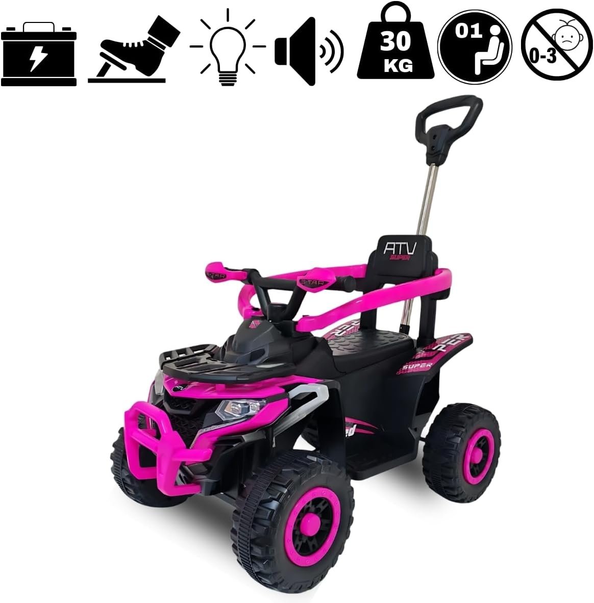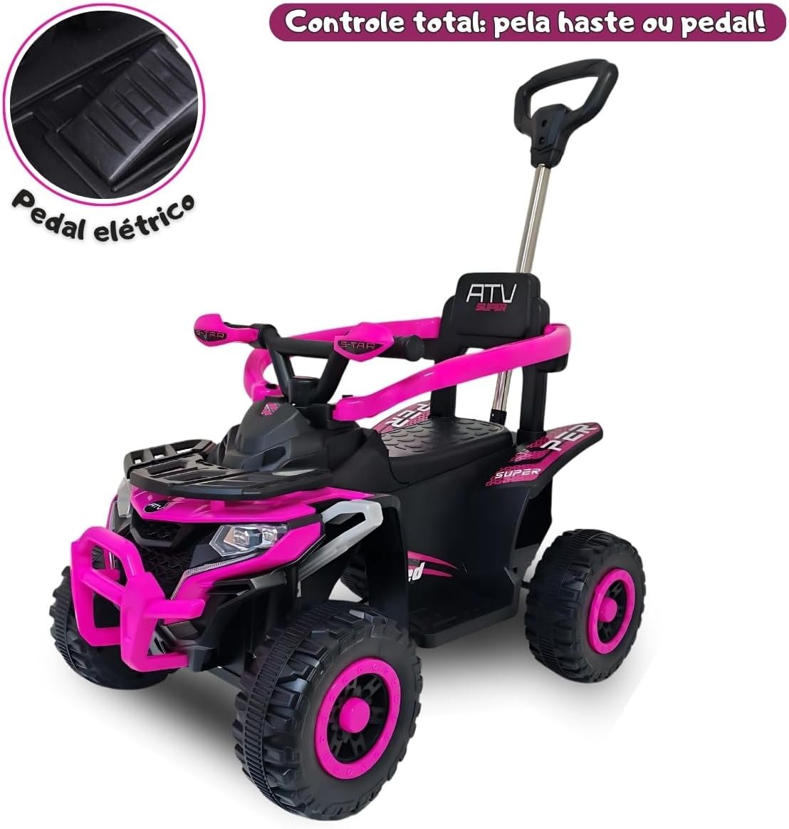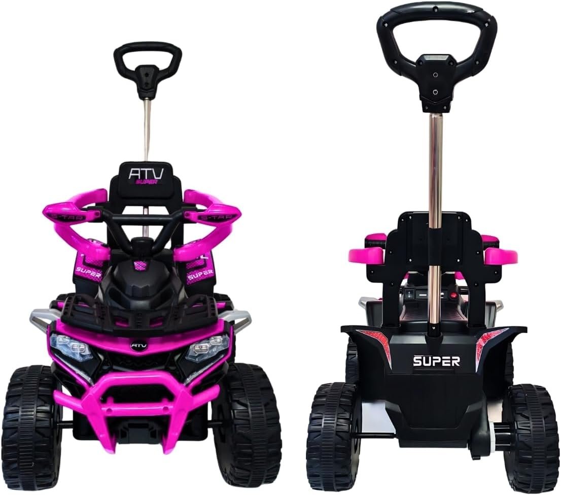 Quadriciclo Elétrico Infantil com Haste Direcionável Som e Luz (Rosa)