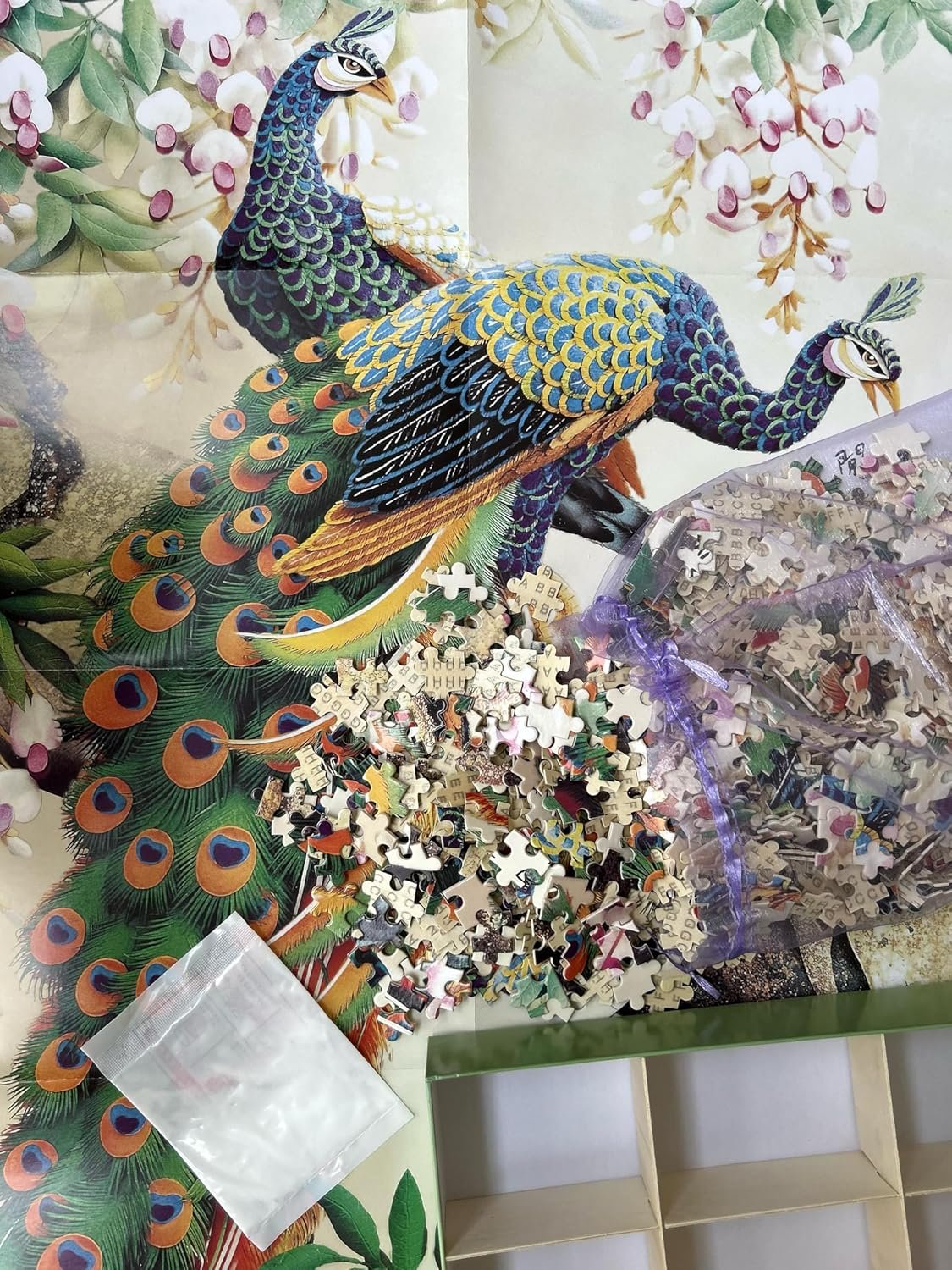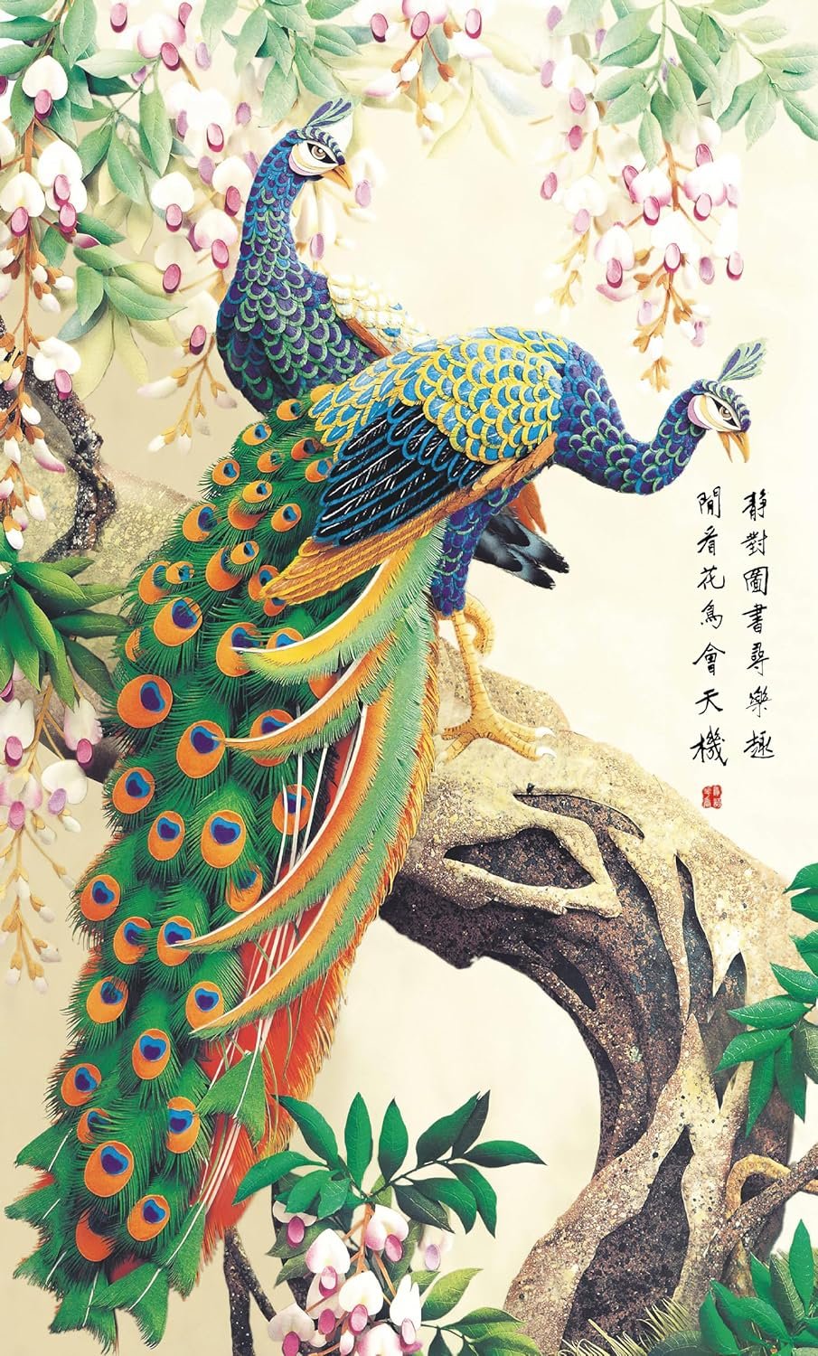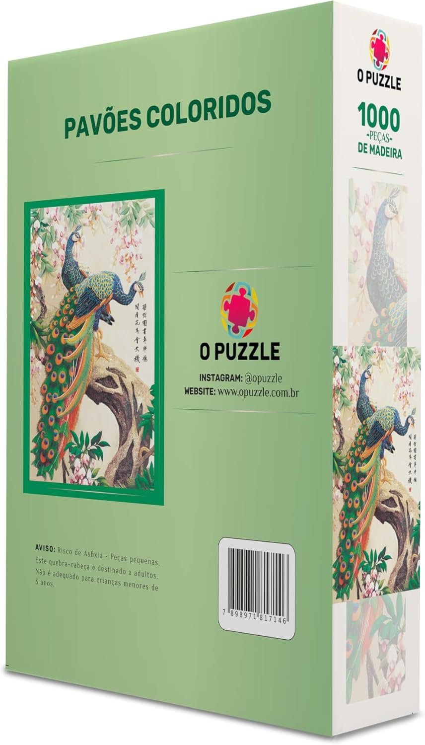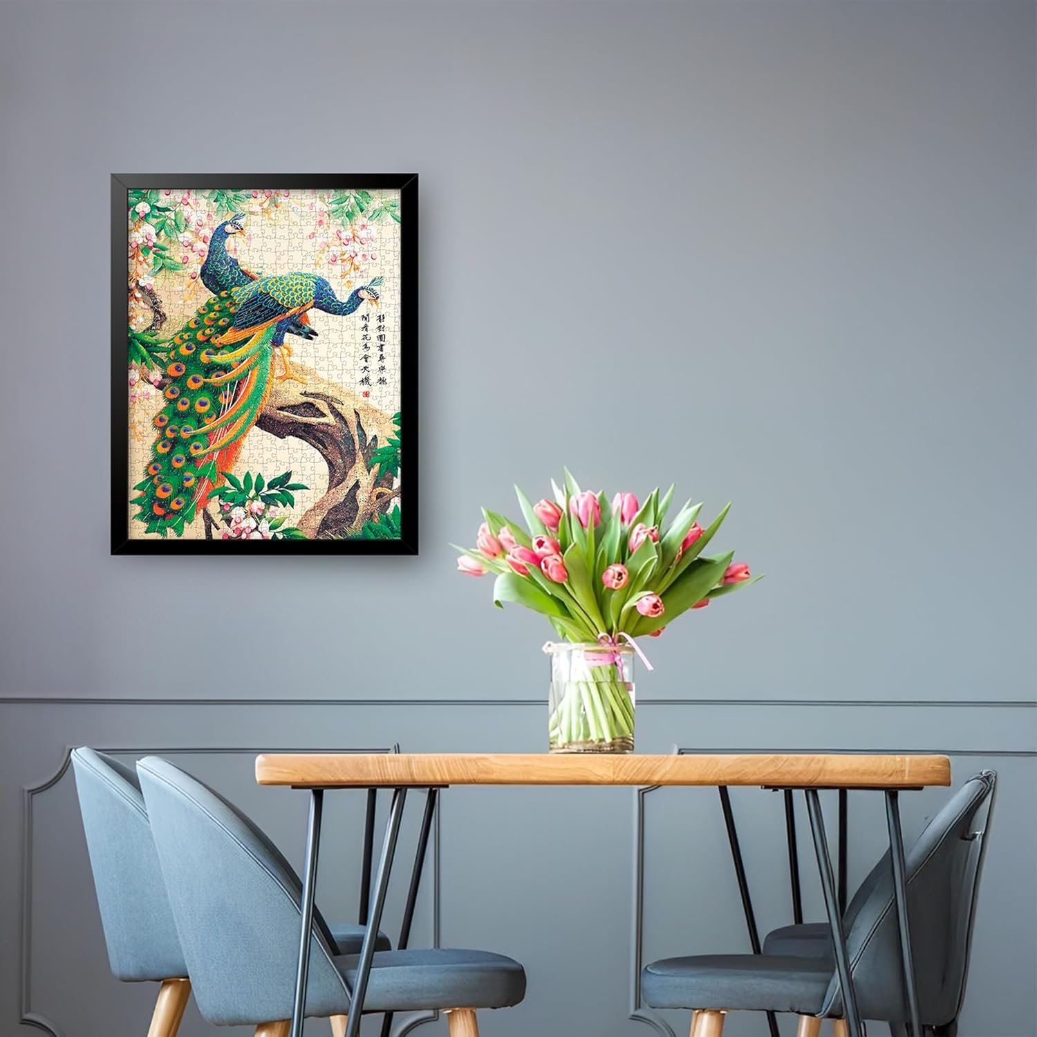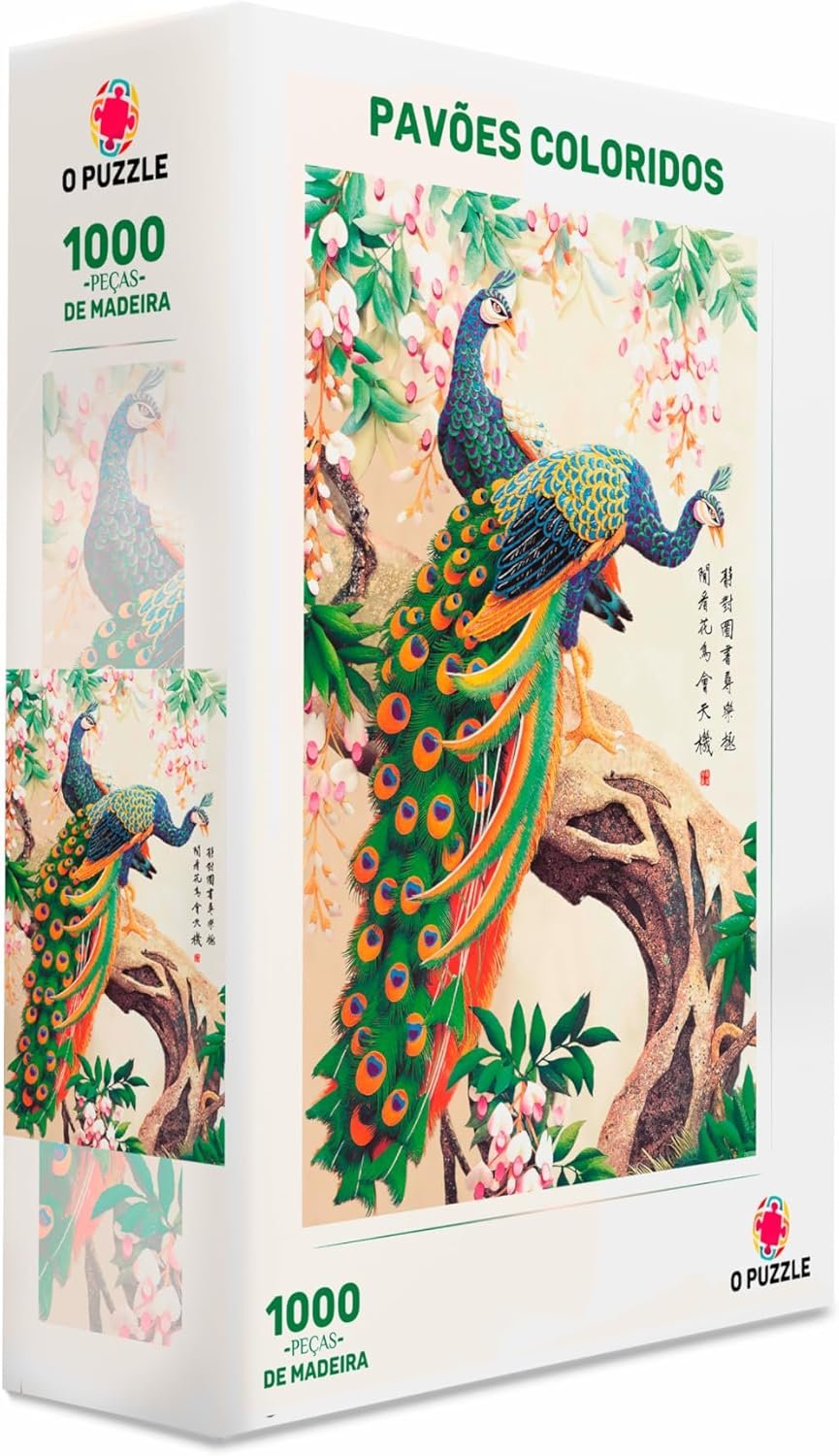 Quebra-cabeça de Madeira 1000 Peças – Pavões Coloridos | Arte Oriental Tradicional | Com Pôster em Tamanho Real, Separadores e Cola | Jogo Relaxante Adulto e Infantil |O Puzzle