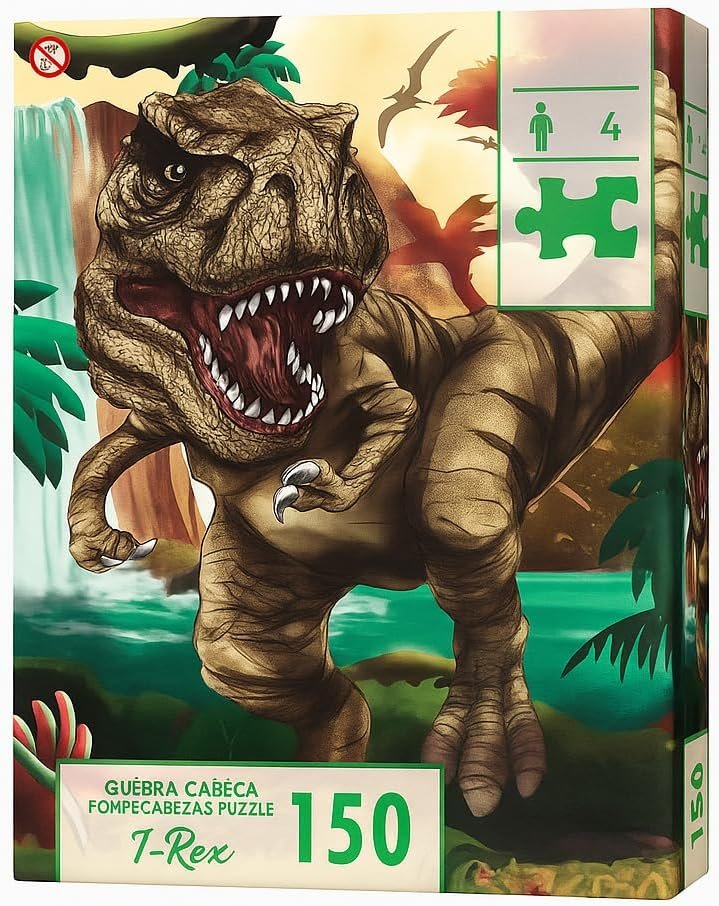 Quebra-Cabeça Dinossauro T-Rex 150 Peças Uma Excelente Ferramenta De Aprendizado Para Os Pequenos Exploradores Brinquedo Educativo para Crianças 4+