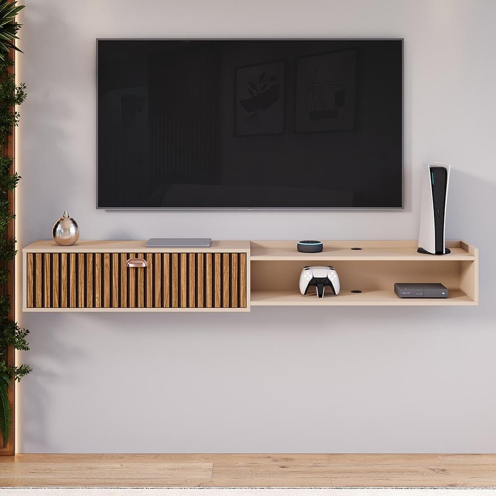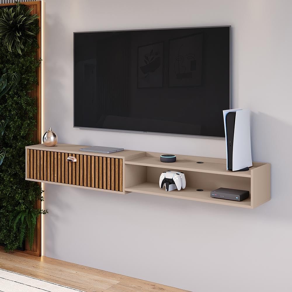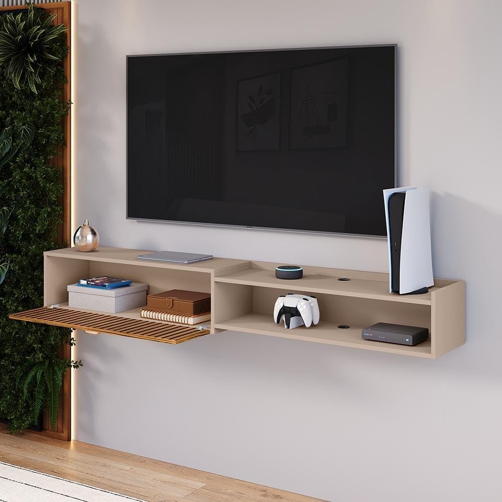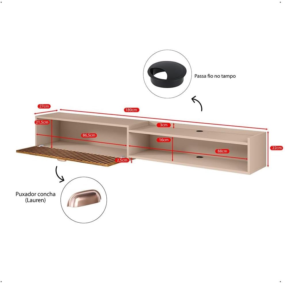 Rack Bancada Suspensa 1.8 Estante Home Supremo King Tv 70 Pol. 1 Porta Nicho Organizador Sala Quarto – Fendi/Ripado