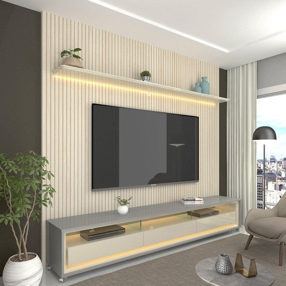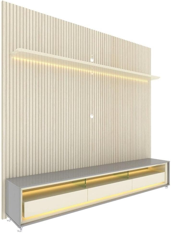 Transforme sua sala com elegância e sofisticação com o Rack com Painel para TV até 75 Polegadas com Led da Gelius Móveis. Com design requintado de 220cm, este rack é perfeito para quem busca funcionalidade e estilo em um só produto. Com rodízios para facilitar a movimentação, este móvel é ideal para quem gosta de praticidade. Seu acabamento em off white ripado/cinza/off white traz um toque moderno e versátil para o ambiente. Renove sua decoração e tenha uma experiência audiovisual incrível com este rack exclusivo!