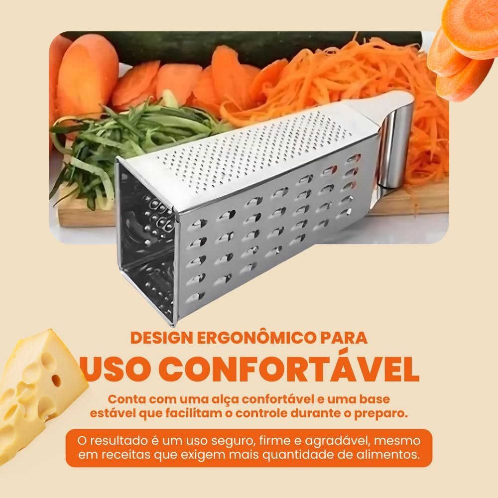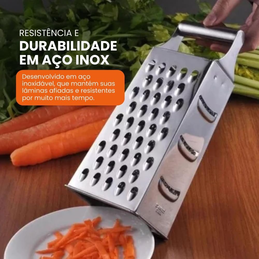 Produto em Destaque: Ralador Fatiador De Alimentos 4 Faces Multiuso Aço Inox Manual Para Cozinha