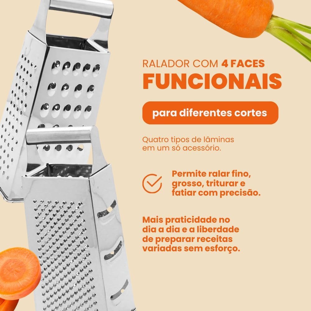 Ralador Fatiador De Alimentos 4 Faces Multiuso Aço Inox Manual Para Cozinha
