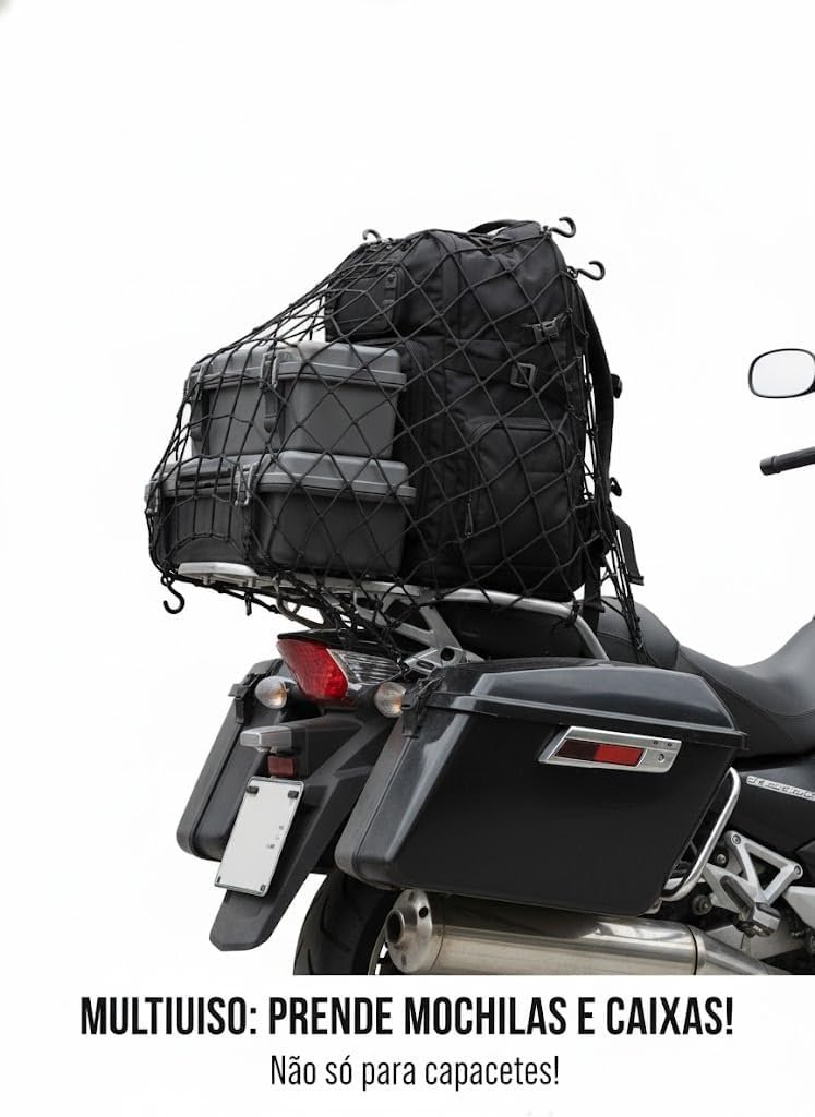 Descrição: Mantenha seus pertences seguros durante seus trajetos com a Rede Elástica Aranha Bomvink. Com ganchos de plástico ABS e design reforçado, essa rede oferece segurança total para prender capacete, baú, mochila e muito mais, seja na moto ou na bicicleta. Nunca mais se preocupe com bagagens soltas ou mal presas. Garanta já a sua!