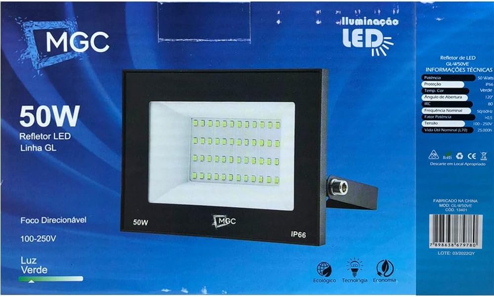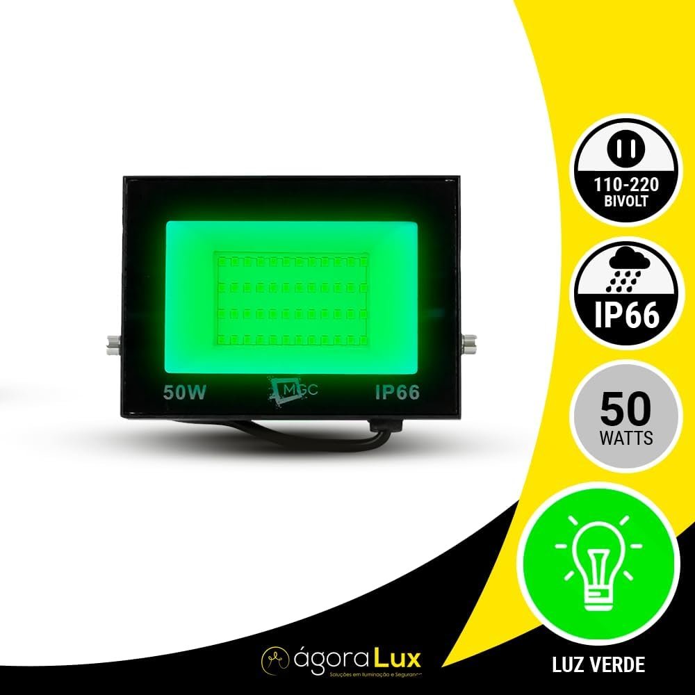 Refletor Holofote 50w Luz Verde A Prova D’ Agua Bivolt Uso Externo