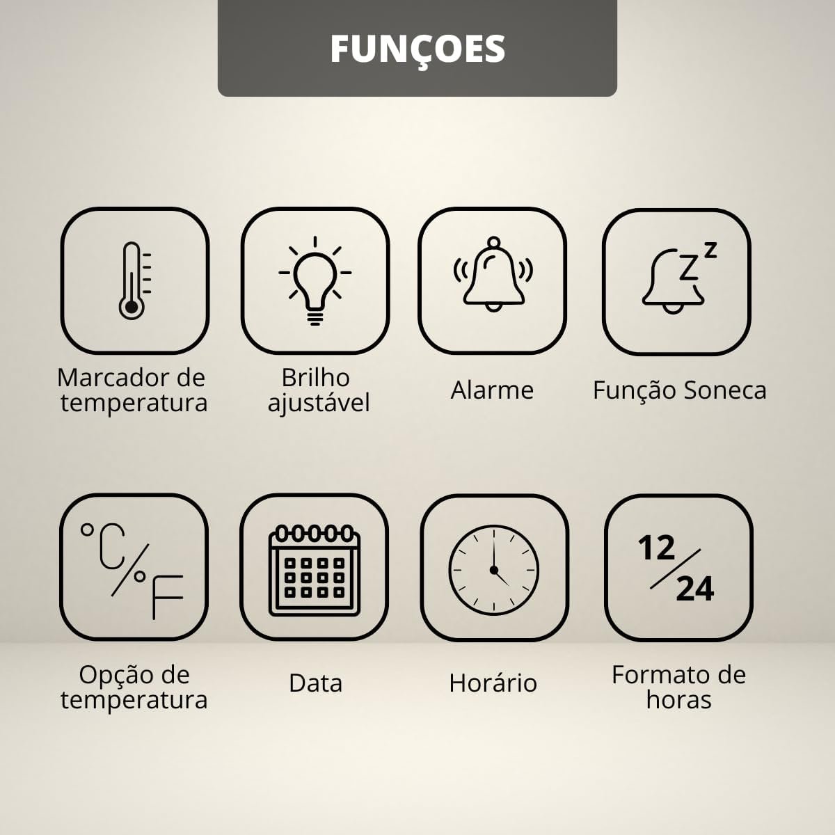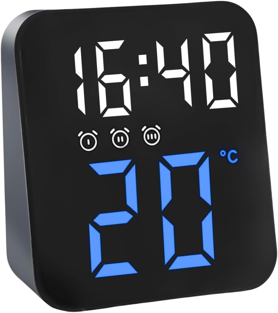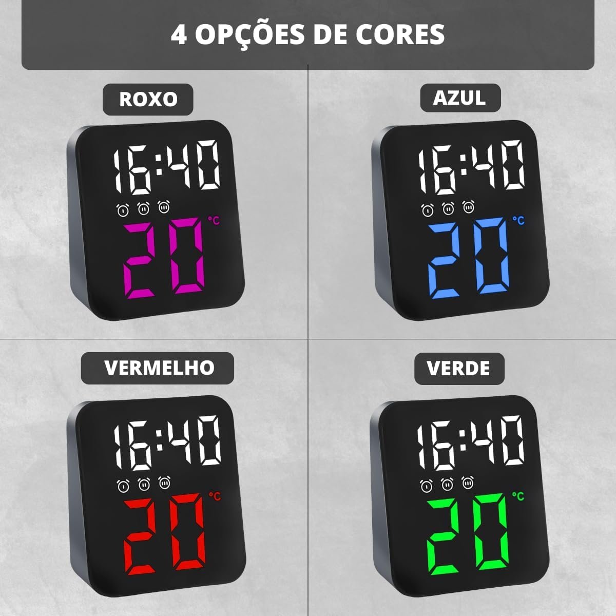 Relógio Digital – Ideal para Mesa e Parede – Display de Led com Luz Noturna, Exibe Temperatura, Função de Despertador, Carregável via USB ou Pilha (Azul)