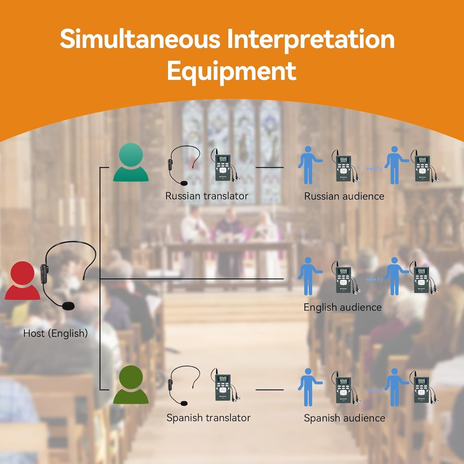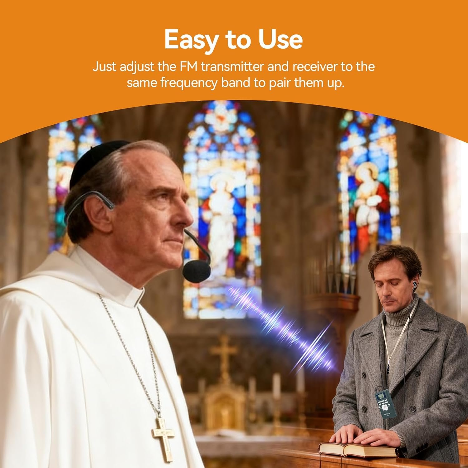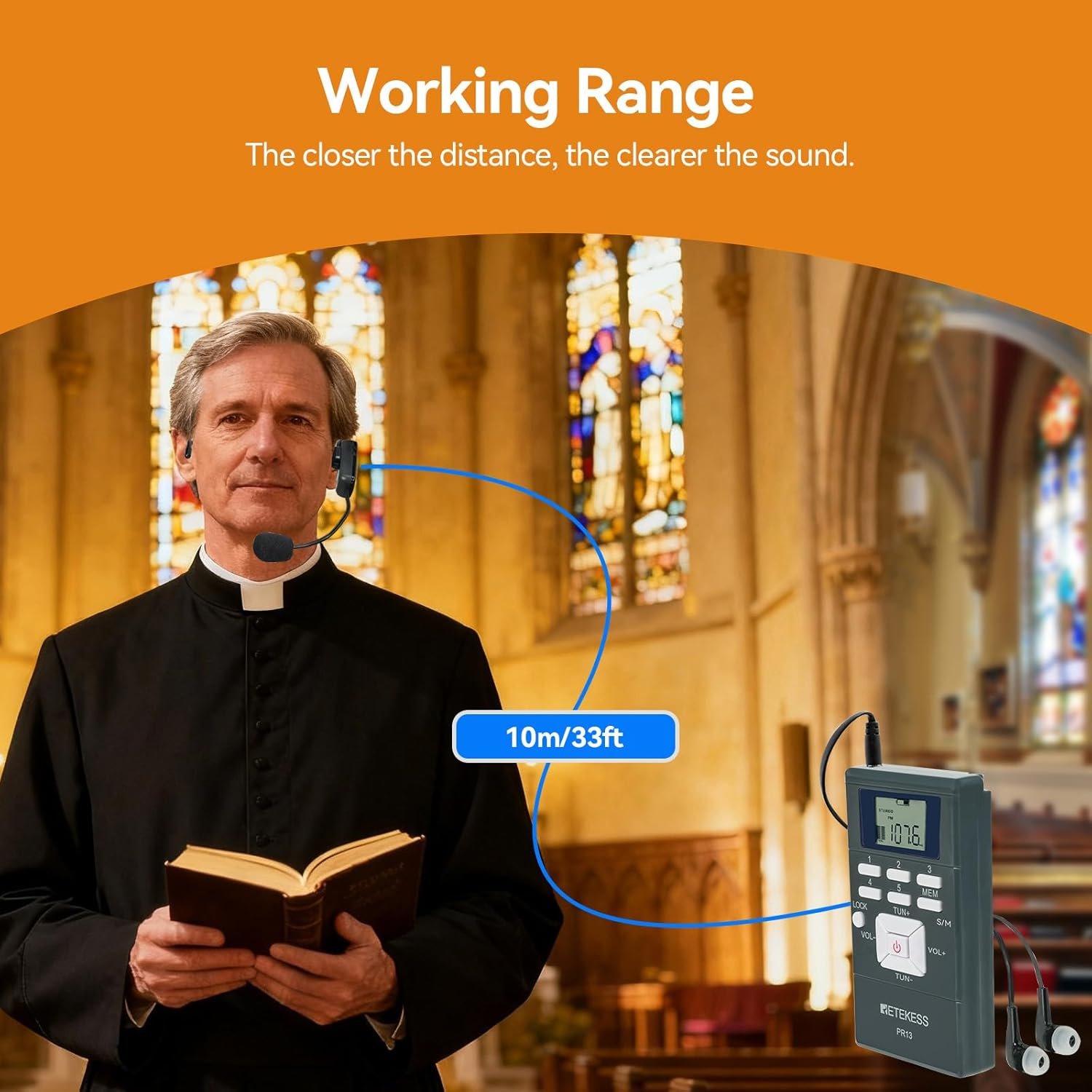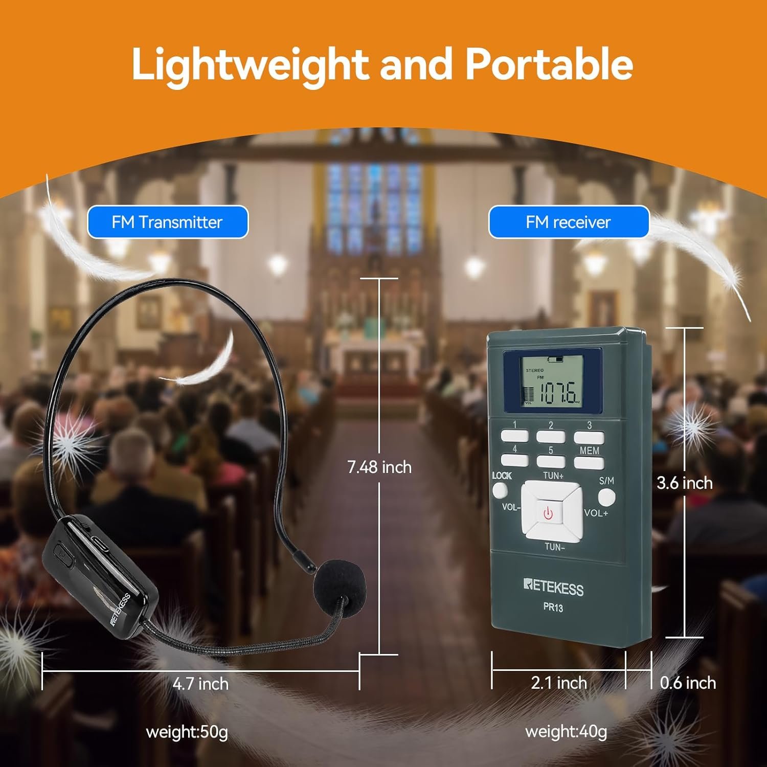 Retekess Sistema de tradução de igreja com 1 fone de ouvido transmissor FM TR503 e 10 receptores de rádio FM PR13, sistema de audição para igreja escolar e museu da fábrica (1 transmissor e 10