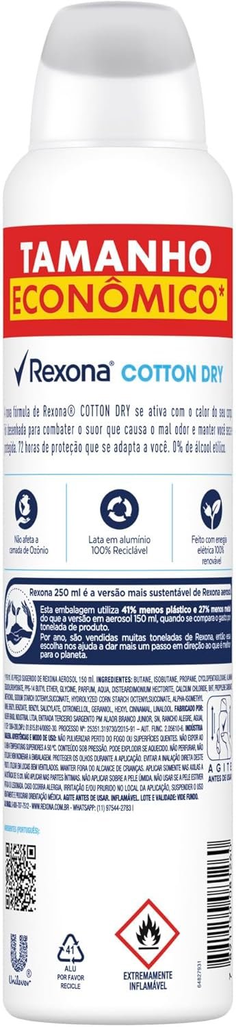 Rexona Antitranspirante Aerossol Cotton Dry 250 mlRexona Antitranspirante Aerossol Cotton Dry 250 ml