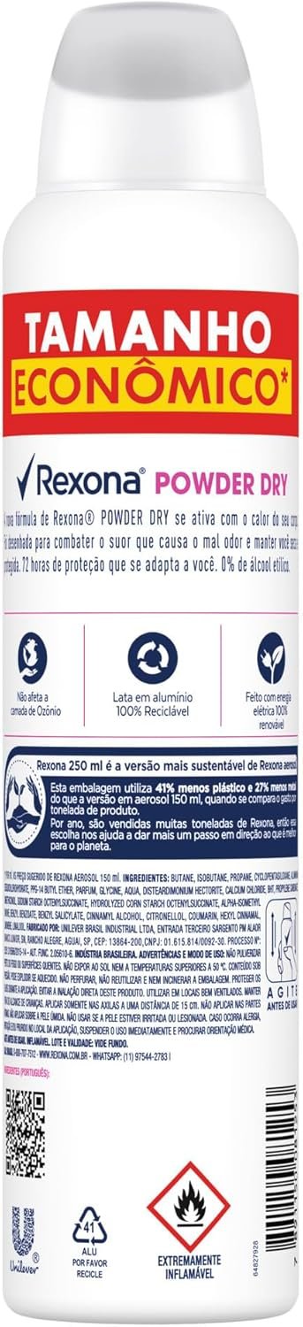 Rexona Desodorante Antitranspirante Aerossol Powder Dry 250 ml
