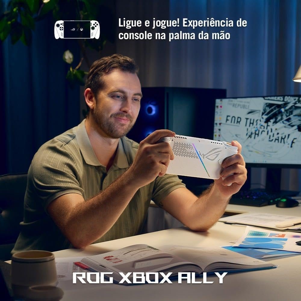 Descubra o incrível ROG Xbox Ally, o console portátil que vai revolucionar sua experiência de jogos. Com uma tela touchscreen de 7″ e taxa de atualização de 120Hz, você terá imagens mais nítidas e fluidas. Equipado com o poderoso processador AMD Ryzen Z2A de 2 GHz, 16 GB de RAM e um SSD de 512 GB, o desempenho é incomparável. O sistema operacional Windows 11 Home garante uma experiência intuitiva e eficiente. Leve, moderno e poderoso, o ROG Xbox Ally é a escolha perfeita para gamers que buscam o melhor em desempenho e portabilidade.