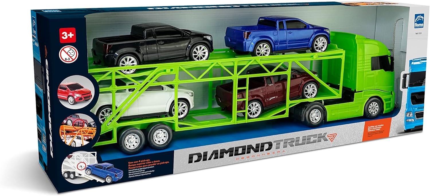 Roma Jensen Br, Roma Brinquedos Caminhão Diamond Truck Cegonheira, 66,0 cm, Cor Sortido, 4 Pick-Up