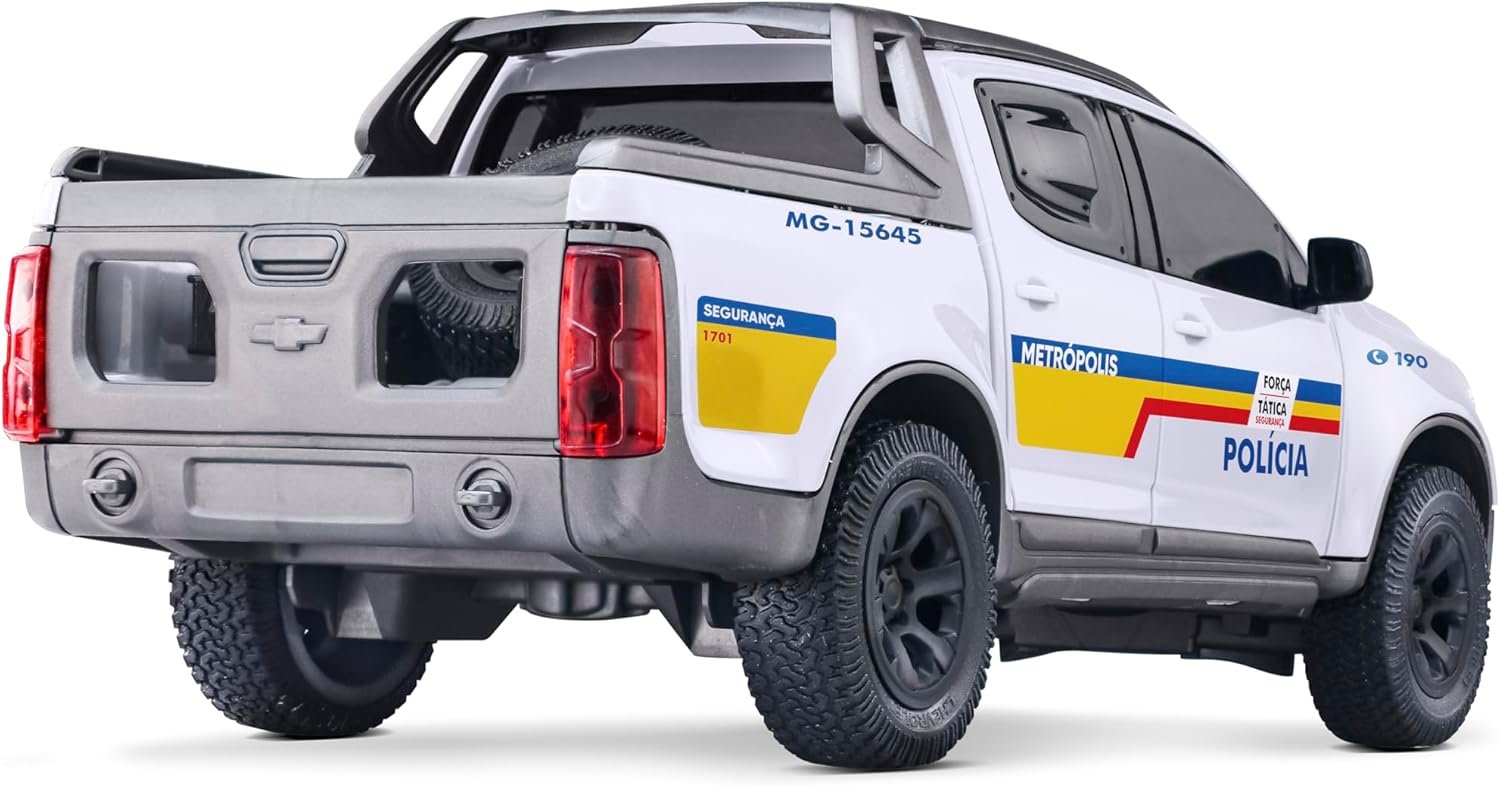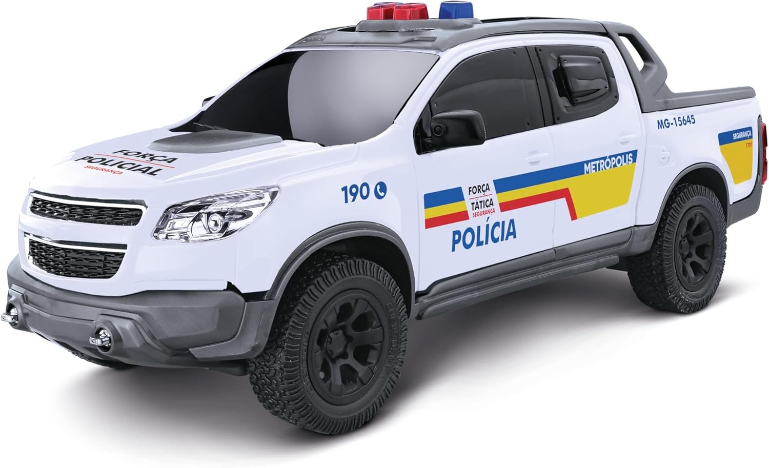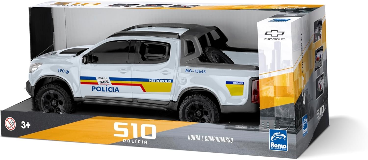 Roma Jensen Br, Roma Brinquedos Caminhonete Pick-Up S10 Polícia MG, 30,5 cm, Cor Branco, Pneu de Borracha, Linha Chevrolet