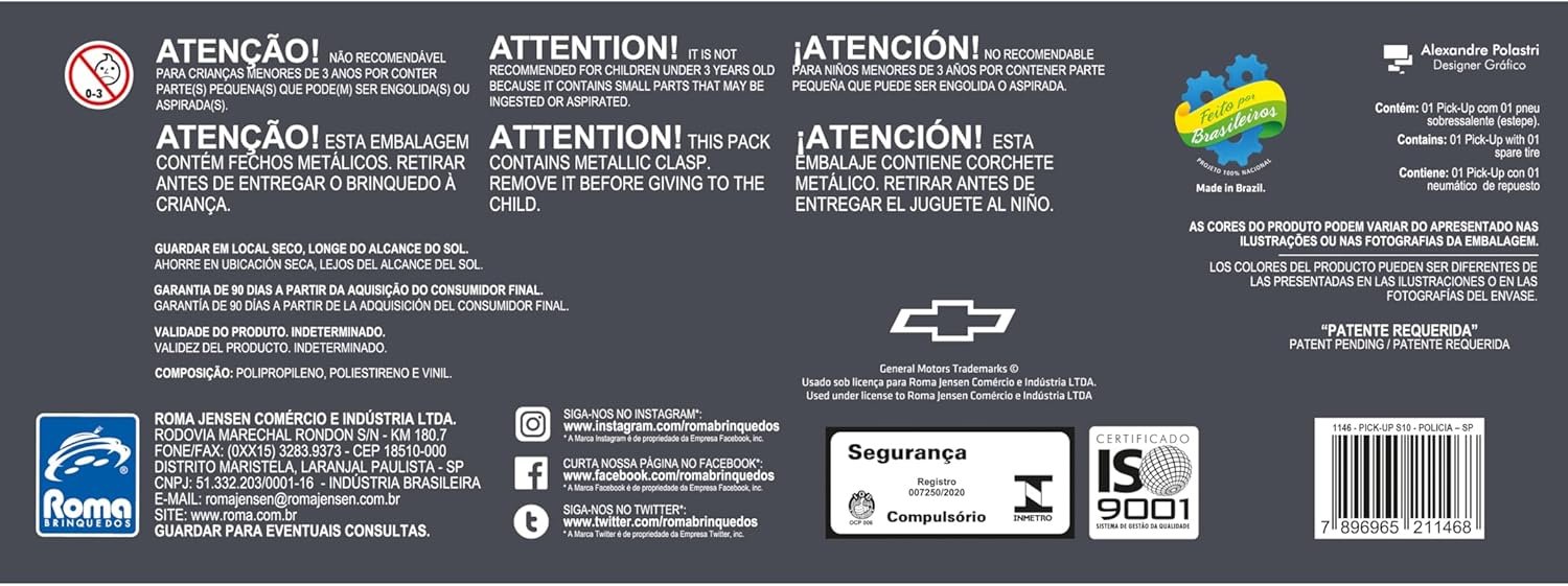 Seja o primeiro a avaliar “Roma Jensen Br, Roma Brinquedos Caminhonete Pick-Up S10 Polícia MG, 30,5 cm, Cor Branco, Pneu de Borracha, Linha Chevrolet”