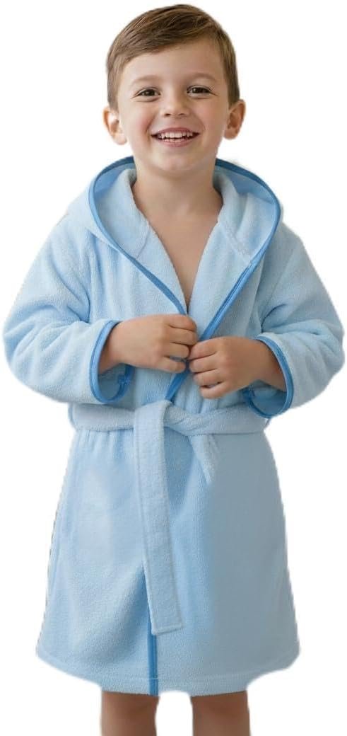 Roupão banho Praia Saída de Piscina Infantil Menina e Menino Poliéster Atoalhado c Capuz Manga Longa