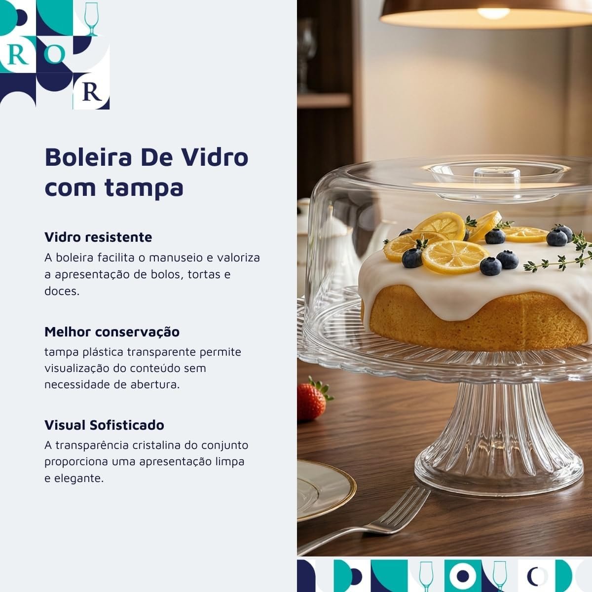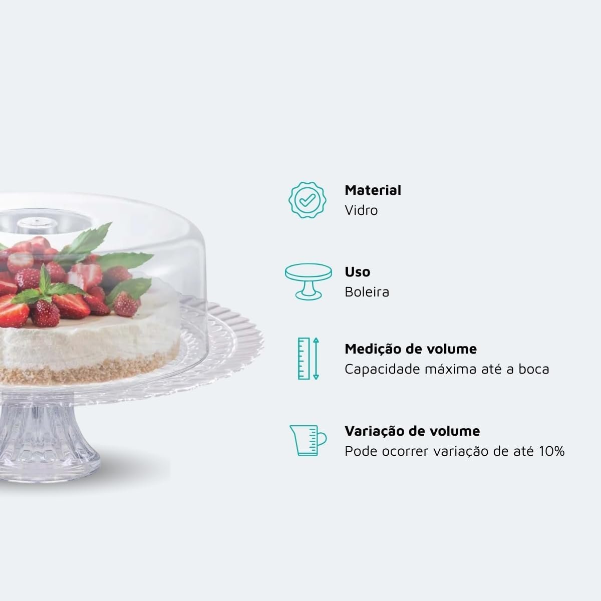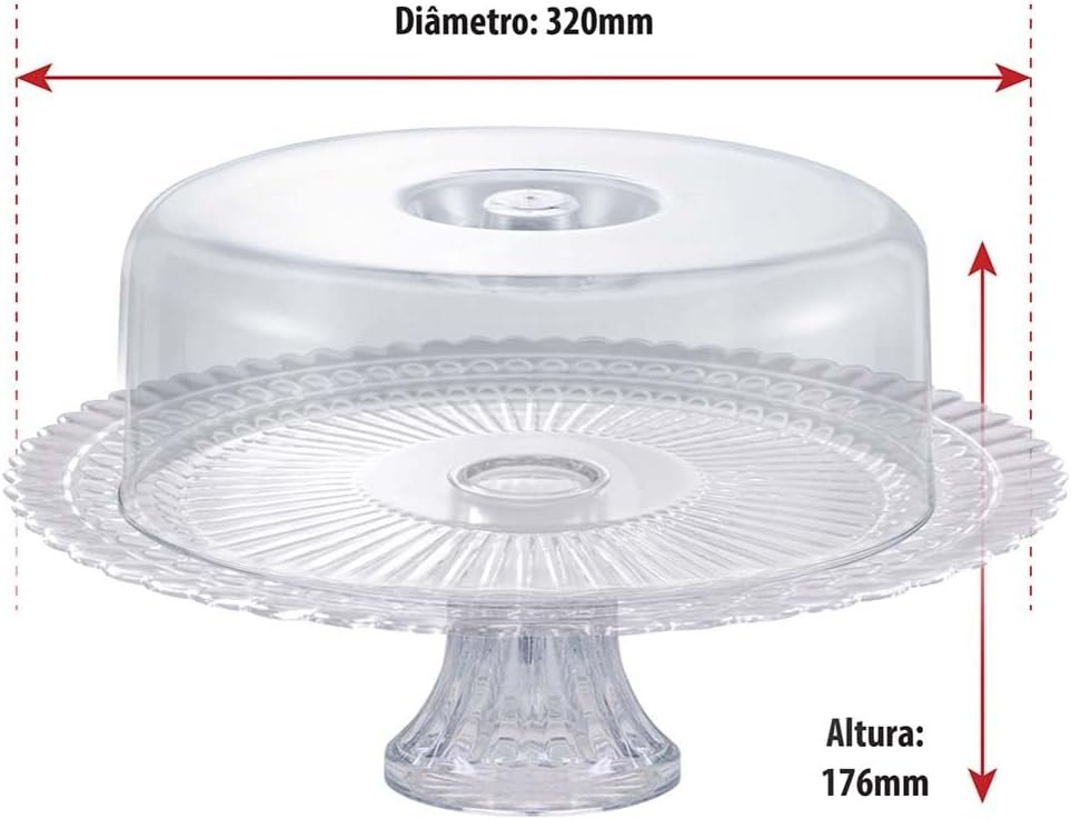 Ruvolo Boleira Gourmet, Boleira de Vidro Com Tampa Acrilica, Porta Bolo e Paes