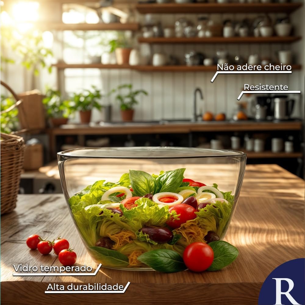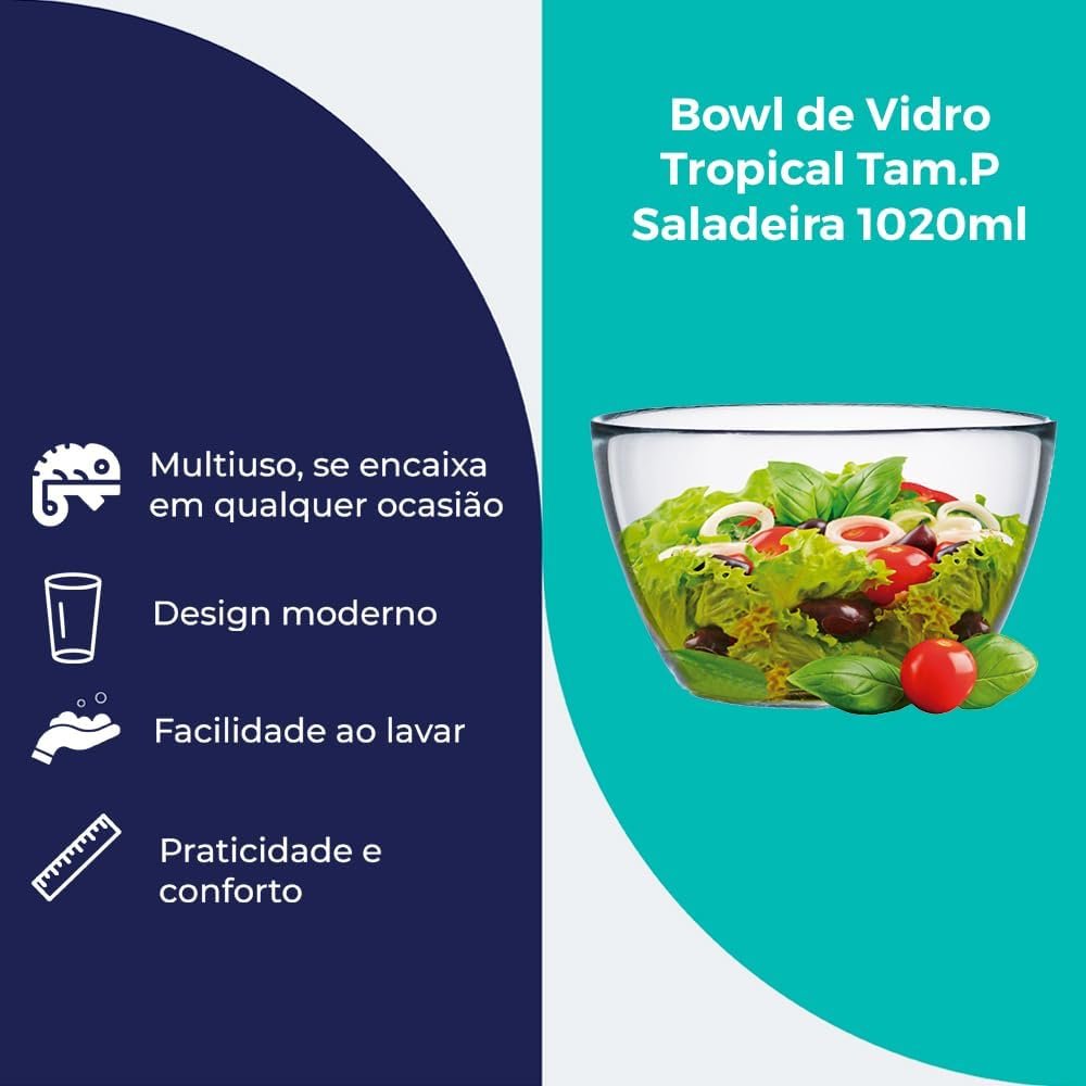 Título do Produto: Ruvolo, Bowl de Vidro Tropical, Saladeira e Bowl Vidro Tam. P, 1020ml