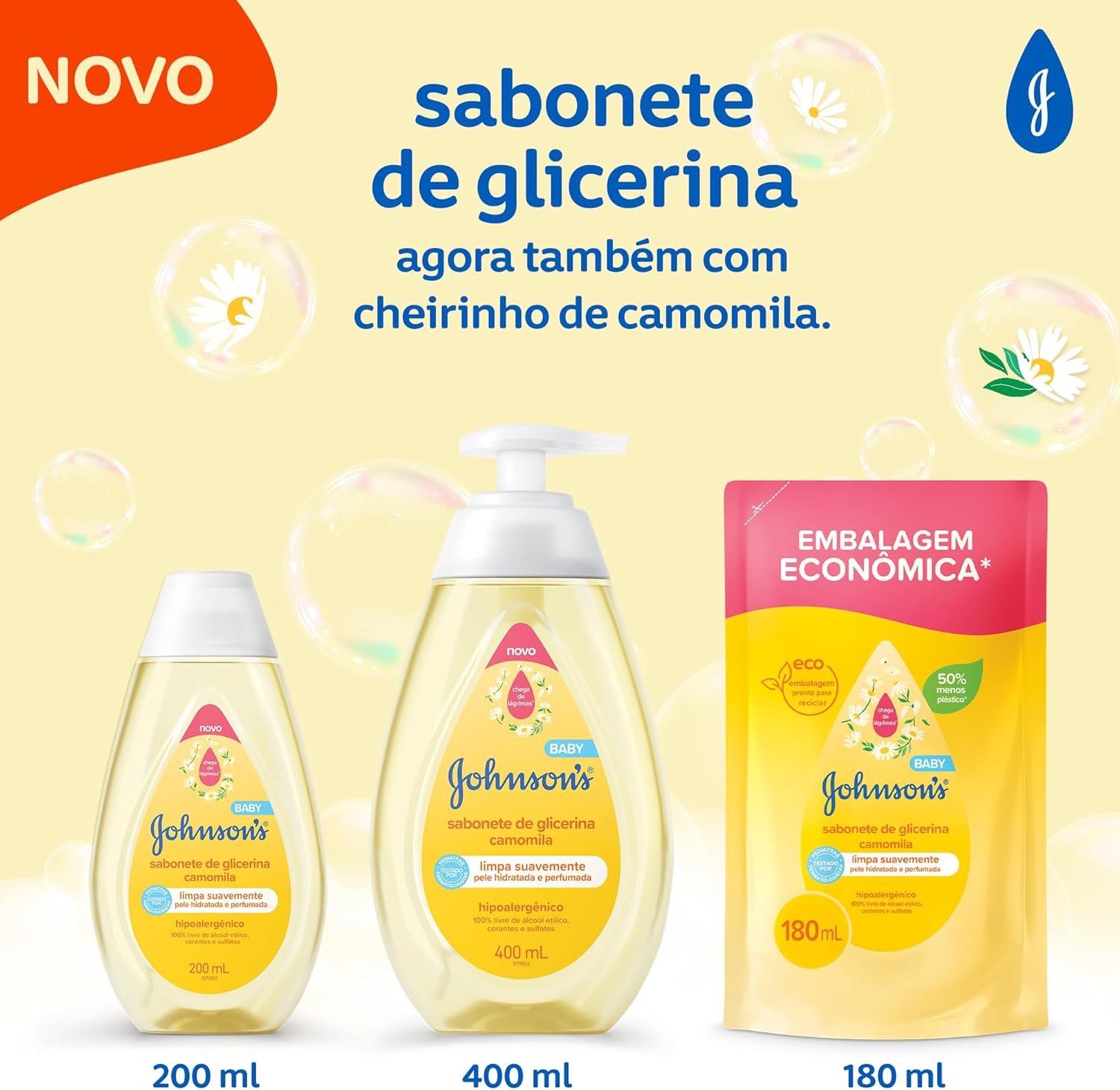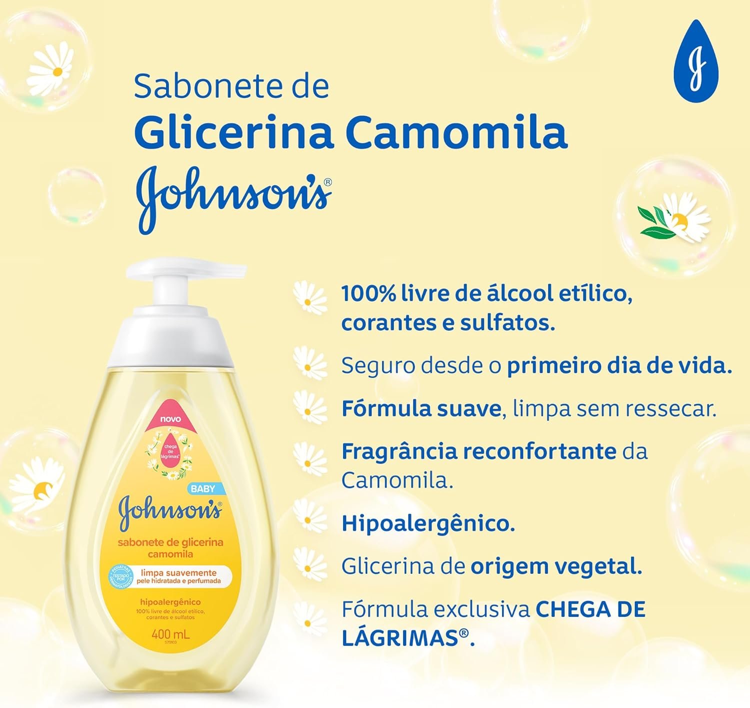 Sabonete Líquido Glicerina Camomila JOHNSON’S® Baby, 400mL