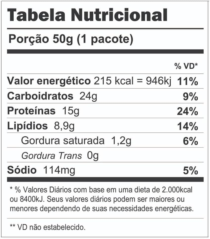 SALGADINHO PROTEICO CHURRASCO 50G – DISPLAY C/8SALGADINHO PROTEICO CHURRASCO 50G – DISPLAY C/8