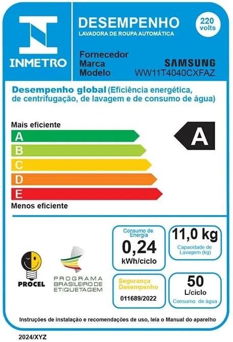 Samsung Lavadora Digital Inverter WW11T Inox 11kg 220V