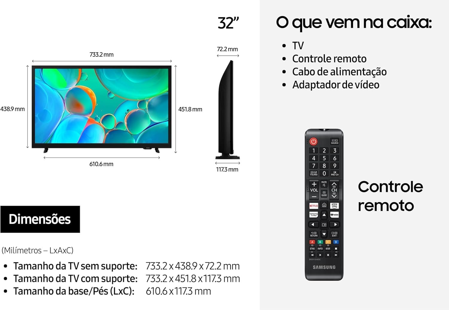 Desfrute de uma experiência de entretenimento imersiva com a Samsung Smart TV 32″ HD H5000F 2025. Com imagens nítidas em alta definição, cores vibrantes e tecnologia de ponta, esta TV oferece qualidade excepcional para seus momentos de lazer. Além disso, conte com a praticidade e conveniência das funcionalidades inteligentes para acessar seus conteúdos favoritos com facilidade. Transforme sua sala em um verdadeiro cinema com a Samsung Smart TV 32″ HD H5000F 2025.