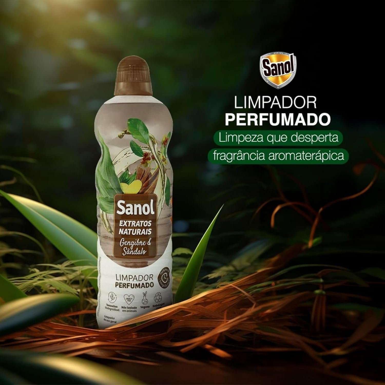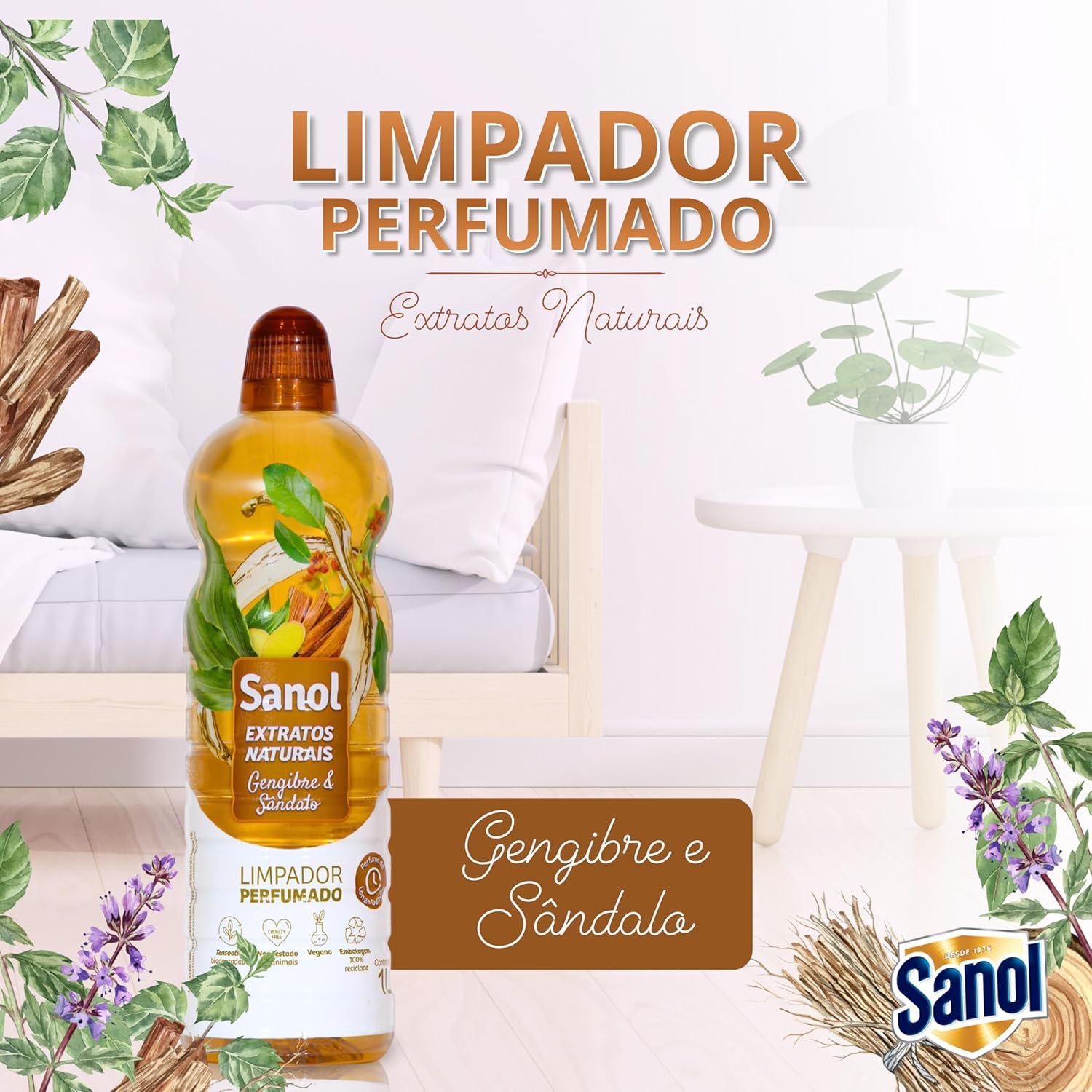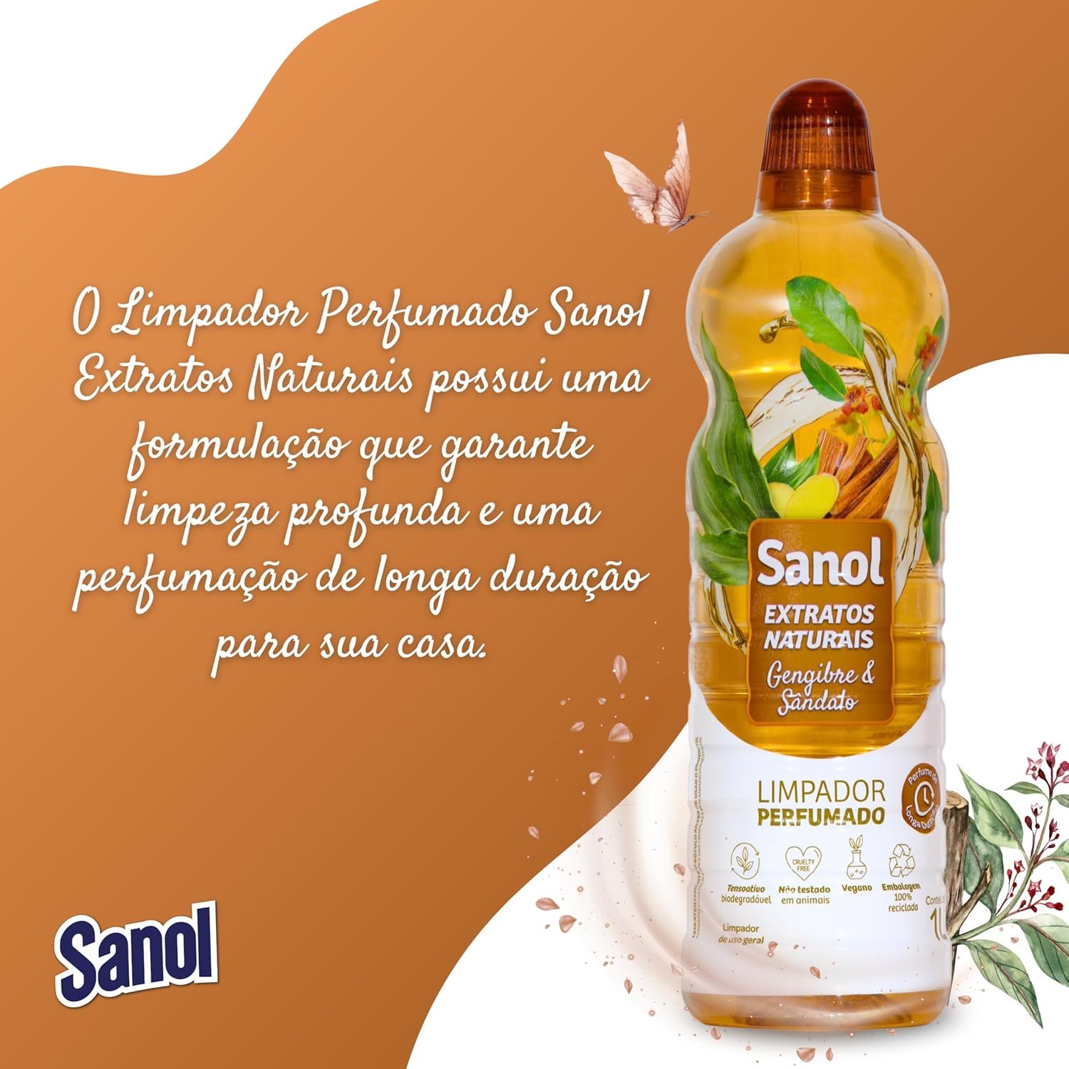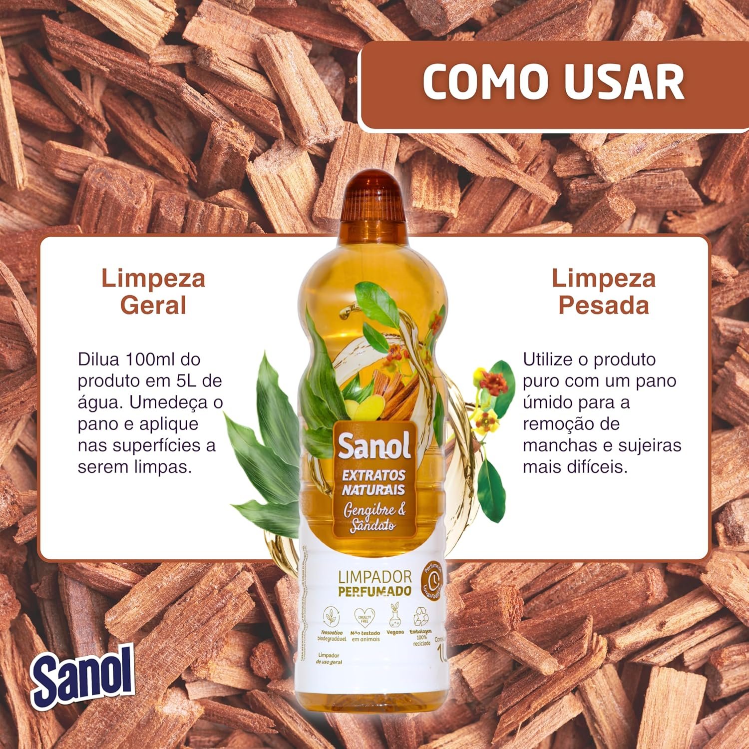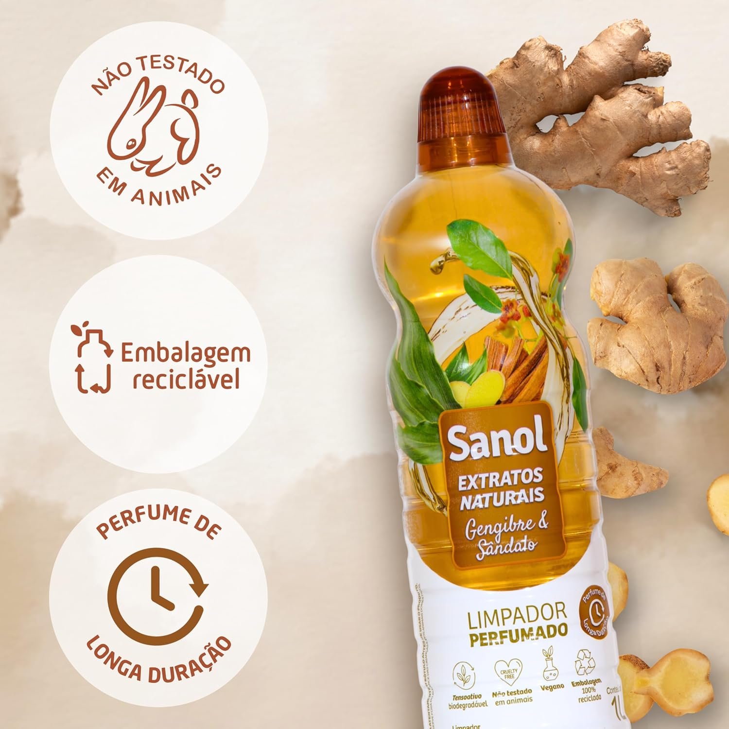 Sanol Limpador Perfumado Extratos Naturais Gengibre & Sândalo 1 Litro Marrom