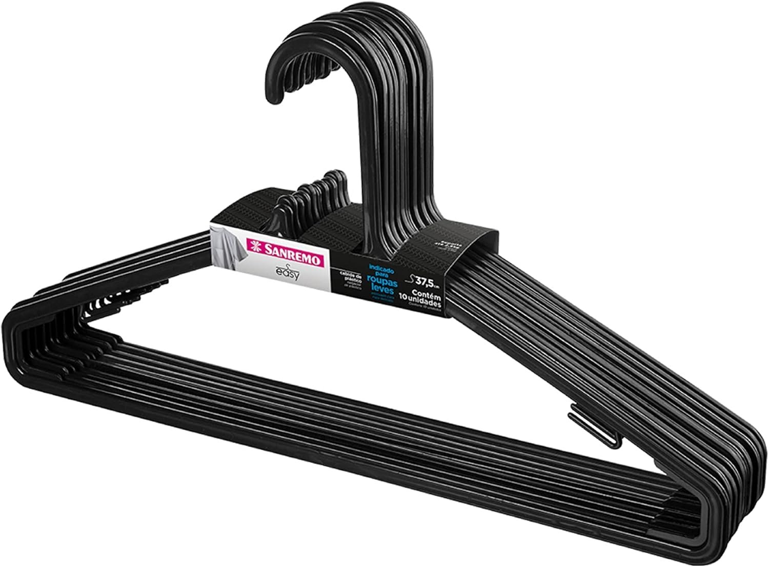 Sanremo – Cabide Plástico Adulto para Roupas Leves, Embalagem com 10 Unidades, Linha Easy