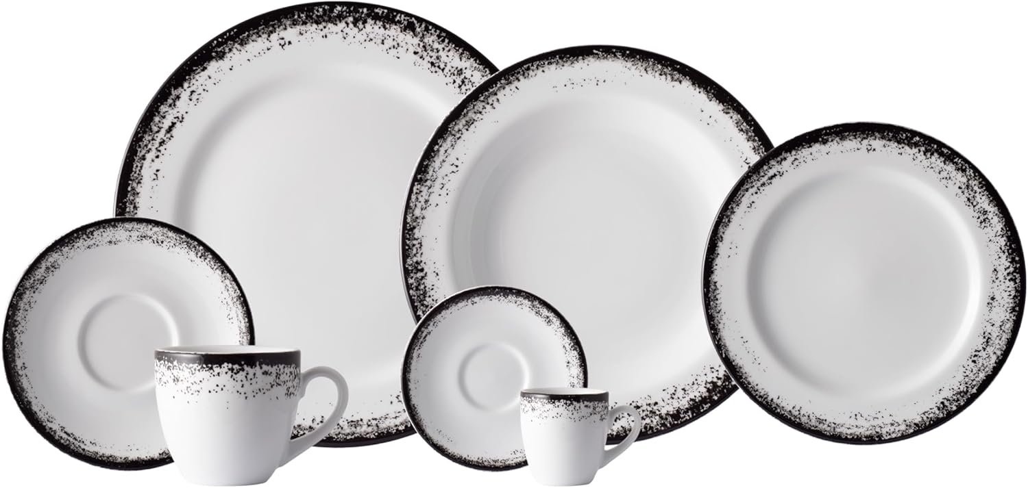 Serviço de Jantar, Chá e Café 42 Peças em Porcelana, Decoração Névoa Preto, Porcelana Schmidt