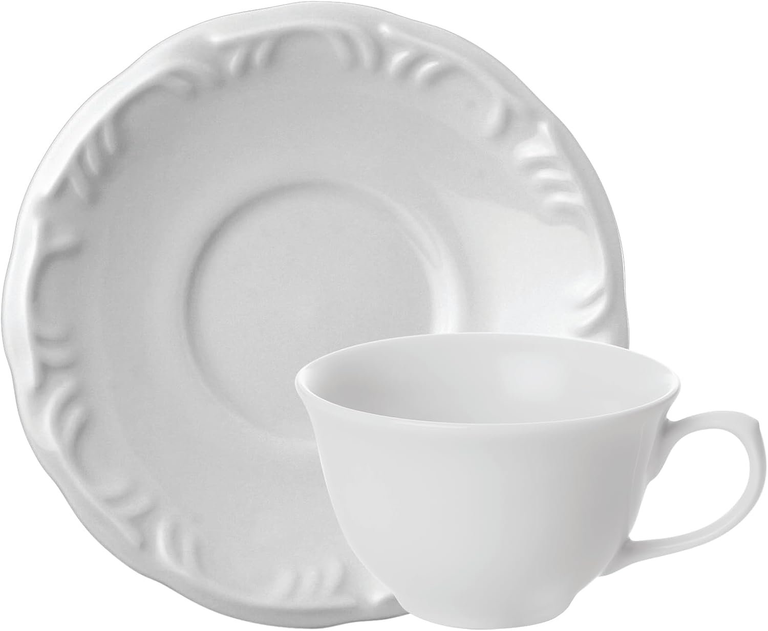 Serviço de Jantar e Café 30 Peças em Porcelana, Xícaras sem Pé, Modelo com Relevo, Pomerode, Branco, Porcelana Schmidt, Redondo