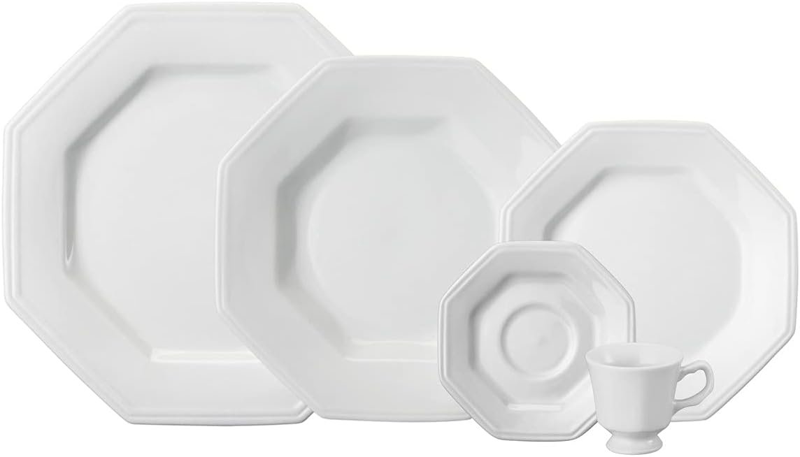 Serviço de Jantar e Chá em Porcelana, 20 Peças, Modelo Octogonal Prisma, Branco, Porcelana SchmidtServiço de Jantar e Chá em Porcelana, 20 Peças, Modelo Octogonal Prisma, Branco, Porcelana Schmidt