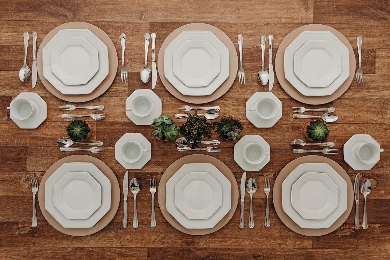 Serviço de Jantar e Chá em Porcelana, 20 Peças, Modelo Octogonal Prisma, Branco, Porcelana Schmidt