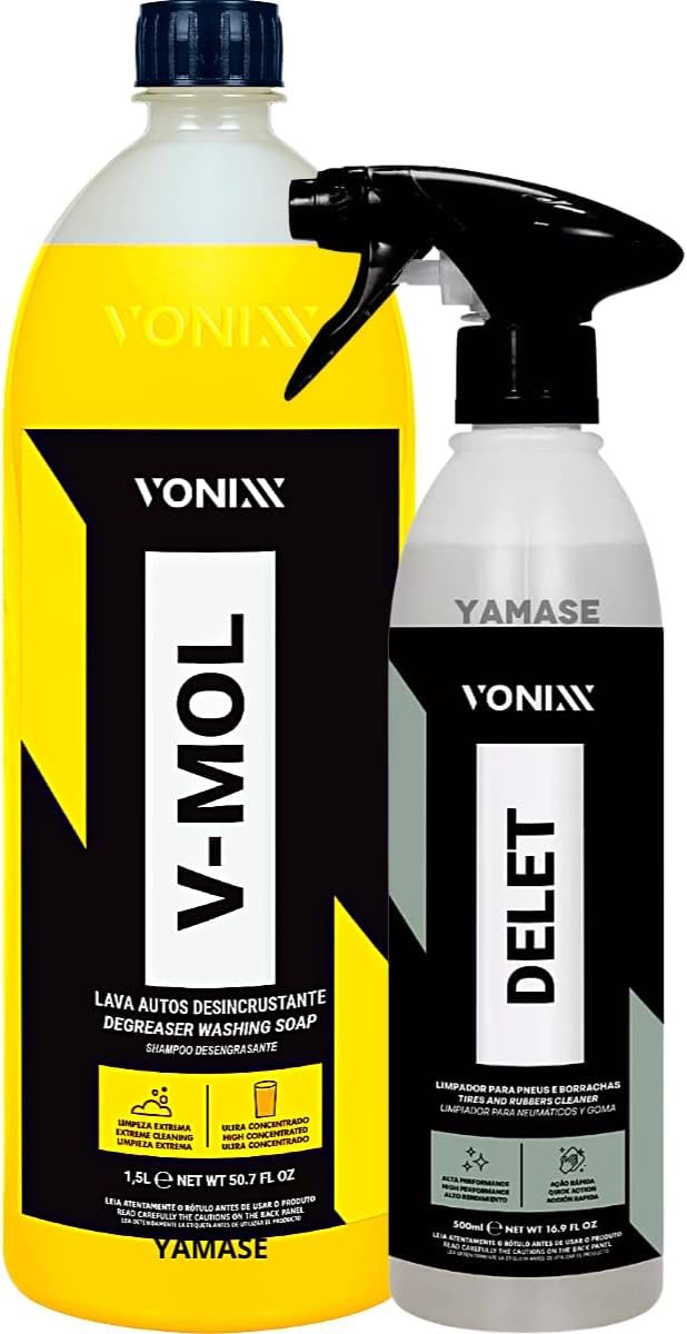 Shampo Automotivo Desengraxante Neutro V-Mol 1,5L Delet 500ml Limpador De Plasticos Borracha Pneu VonixxShampo Automotivo Desengraxante Neutro V-Mol 1,5L Delet 500ml Limpador De Plasticos Borracha Pneu Vonixx