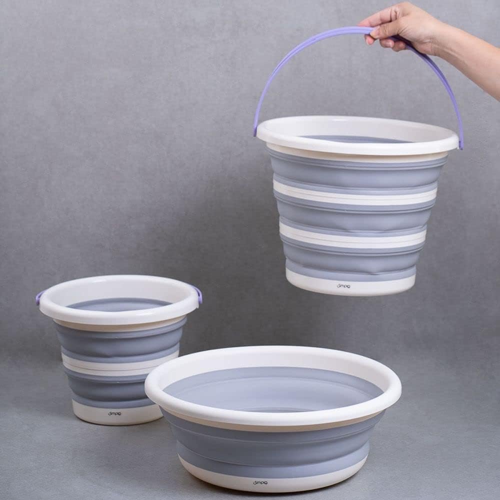 Simplo – Kit 2 Baldes Dobráveis de Plástico 5L e 10L e Bacia 8L