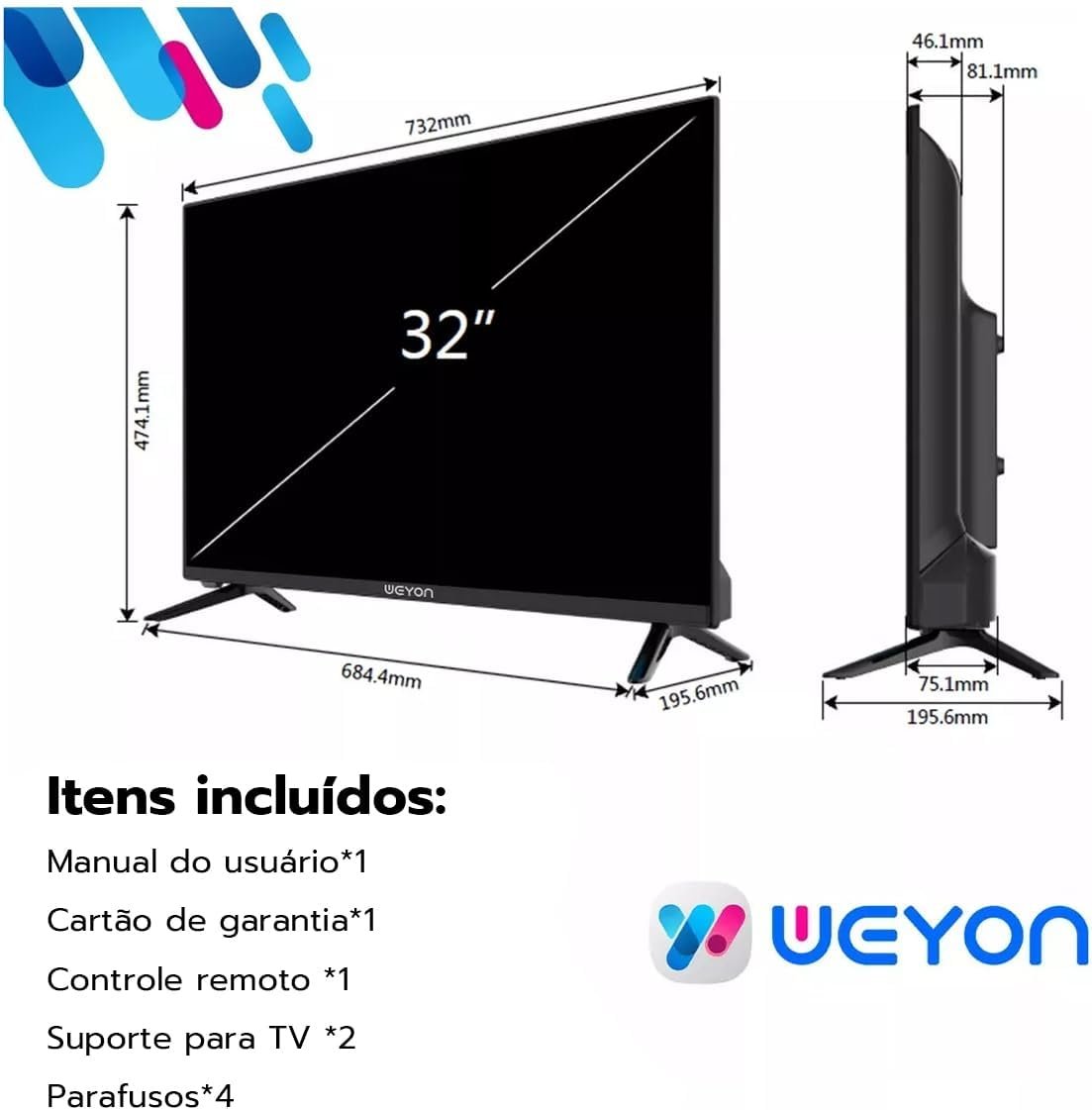 Smart Tv 32” Led Hd Wi-fi Weyon Tv 60hz 32wdsnbx 100/240v Android 14