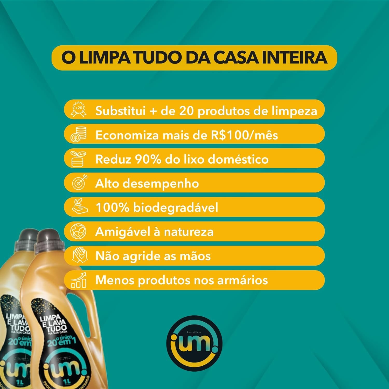 Adquira o SmartClean UM 1 Litro e descubra como é fácil manter sua casa impecável todos os dias, com um produto que cuida do seu lar e da sua família.