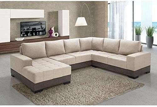 Sofá de Canto 5 Lugares com Chaise Esquerdo Patrícia Suede Areia