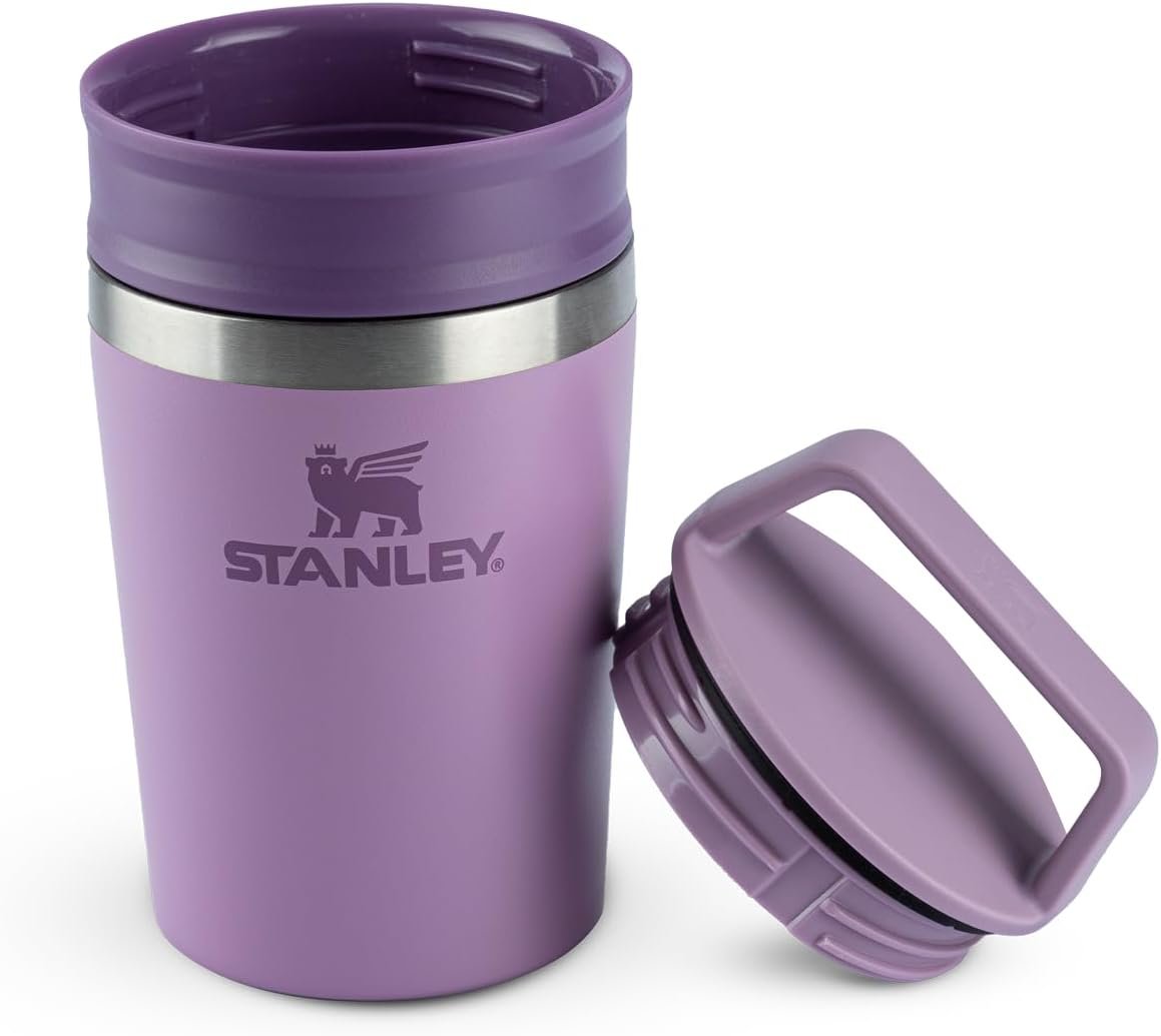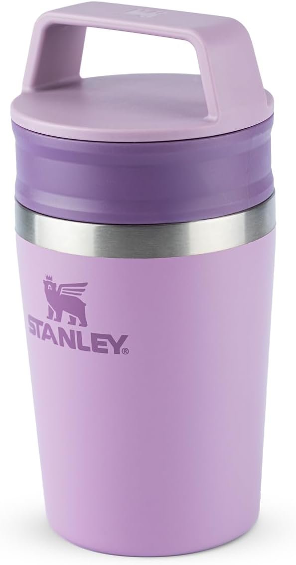 Stanley – Copo de Café Térmico, Caneca de Viagem Café Go com Tampa de Duas Partes Para Beber e Alça de Transporte, Garrafa Térmica de Aço Inoxidável, 236 ml, Lilac