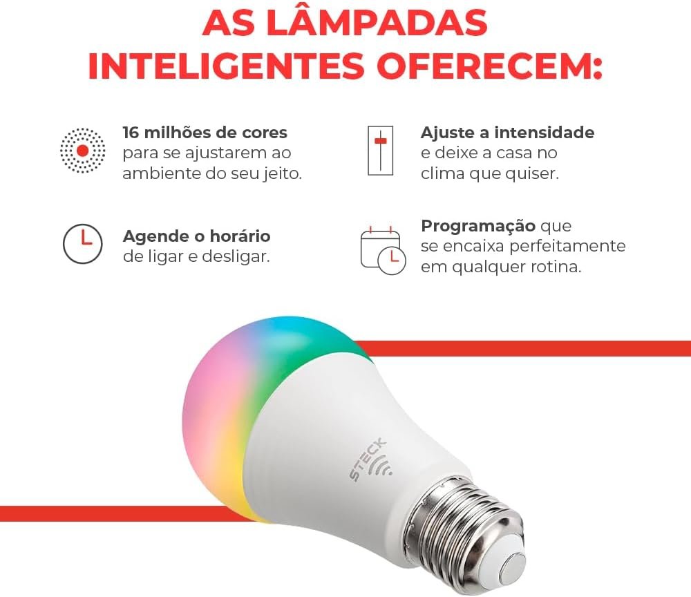 Steck, Lâmpada Rgb+ 12W Wi-Fi Ble, Ambiente Conectado, SLAMP1