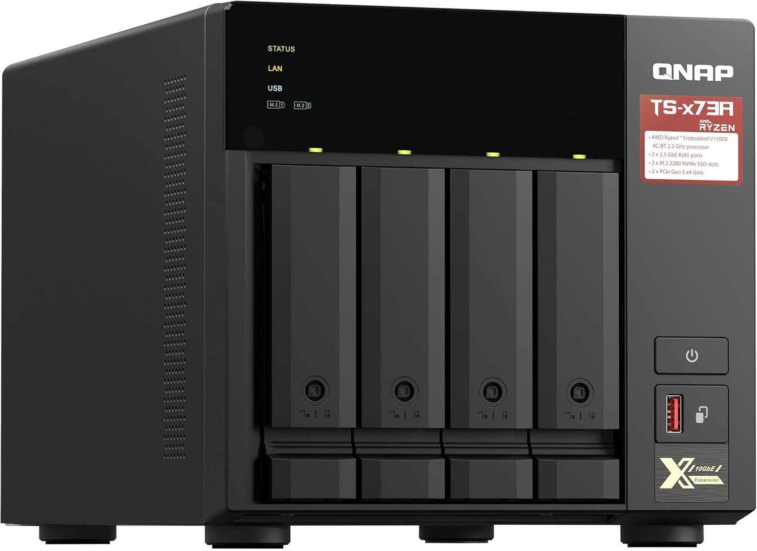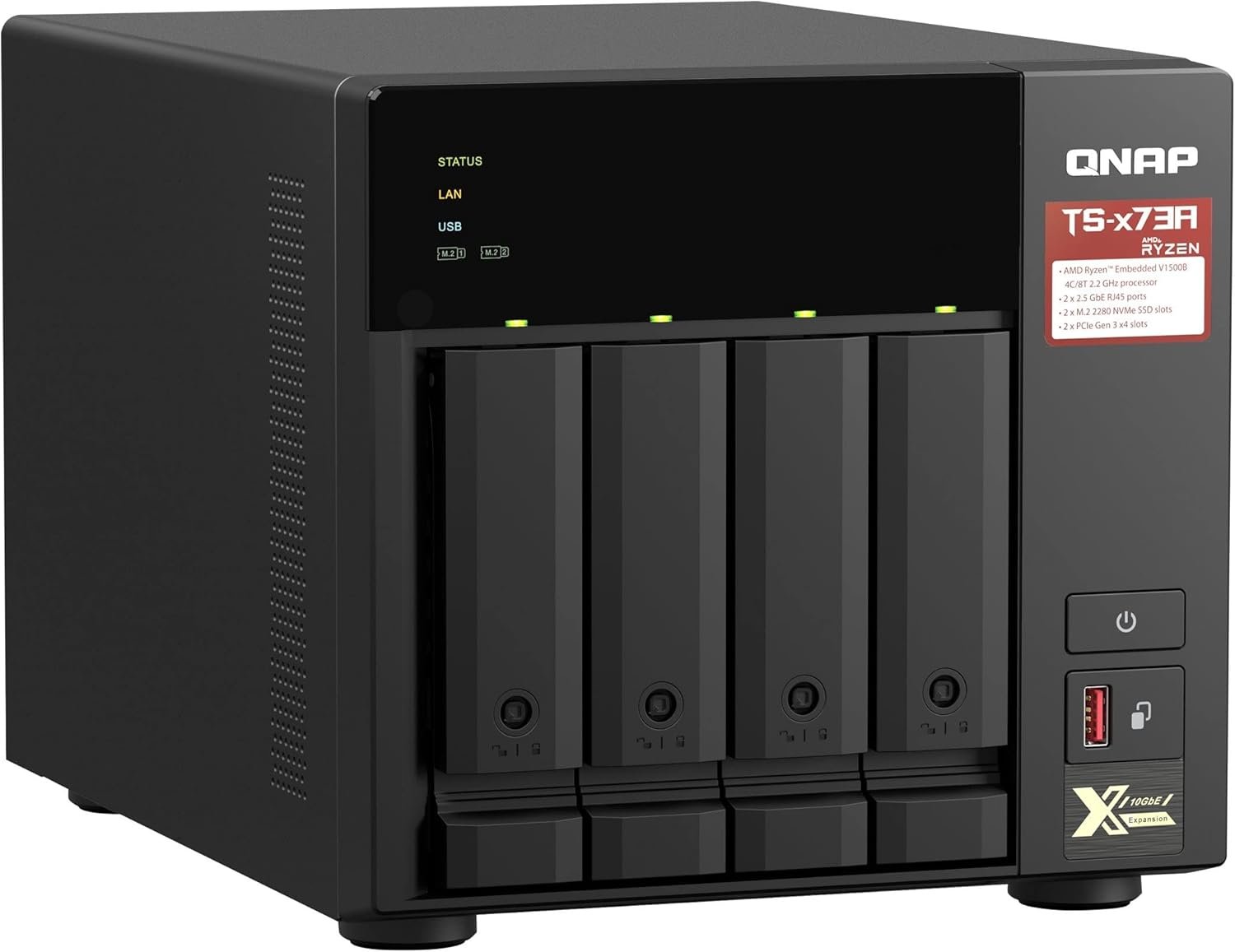 Storage QNAP TS-473A-8G 4-Baias – Ryzen V1500B 2.2GHz (Quad-Core), 8GB DDR4, 2 x 2.5G Ethernet, 2 x M.2, Torre