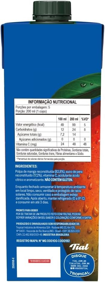 Suco Misto de Manga e Maçã 100%, Tial, 1L, Sem Adição de Açúcar, Sem Ingredientes Artificiais, Não Contém Conservantes, Pronto para Beber