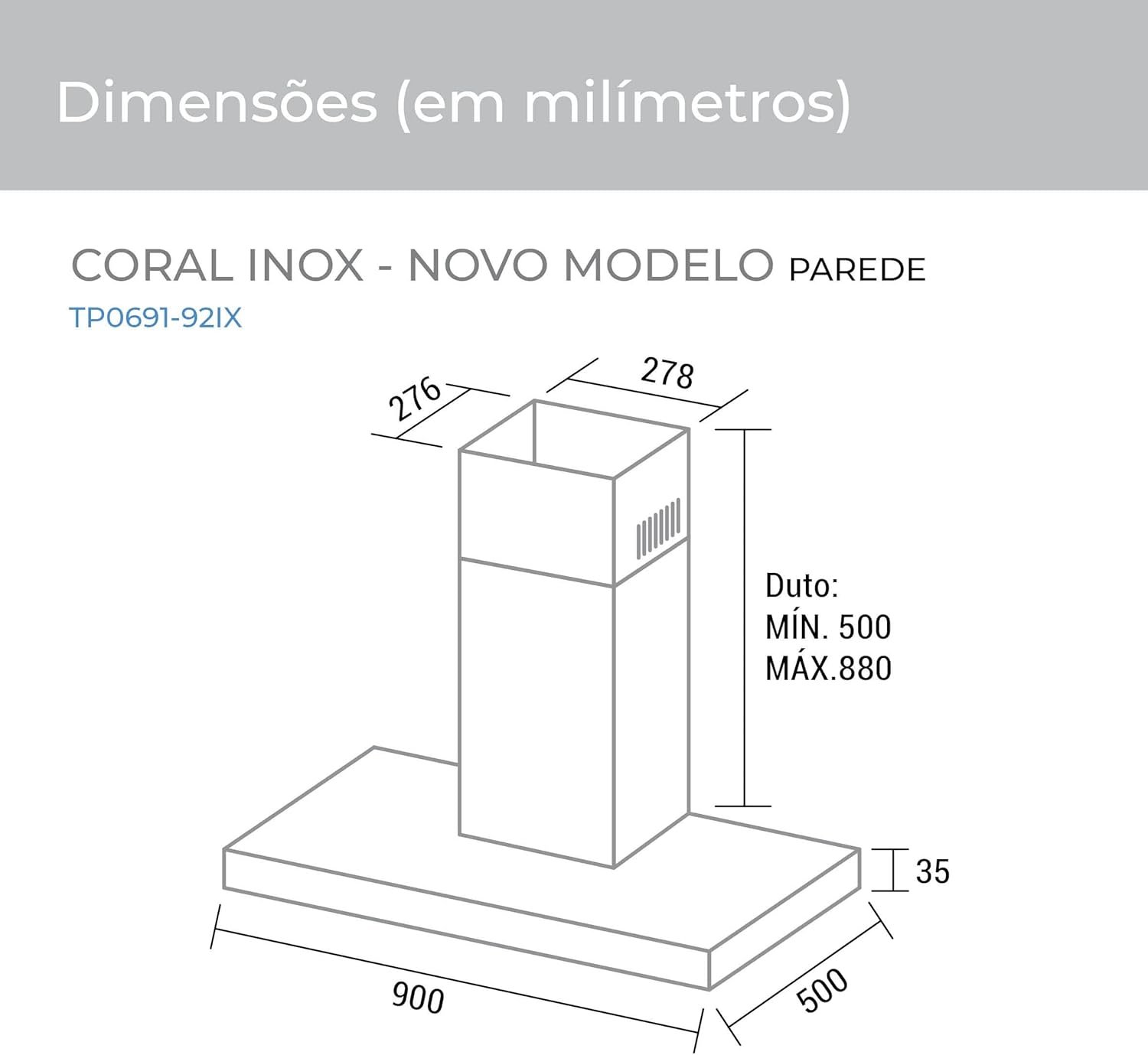 SUGGAR COIFA DE PAREDE CORAL 90CM 220V INOX TP0692IX