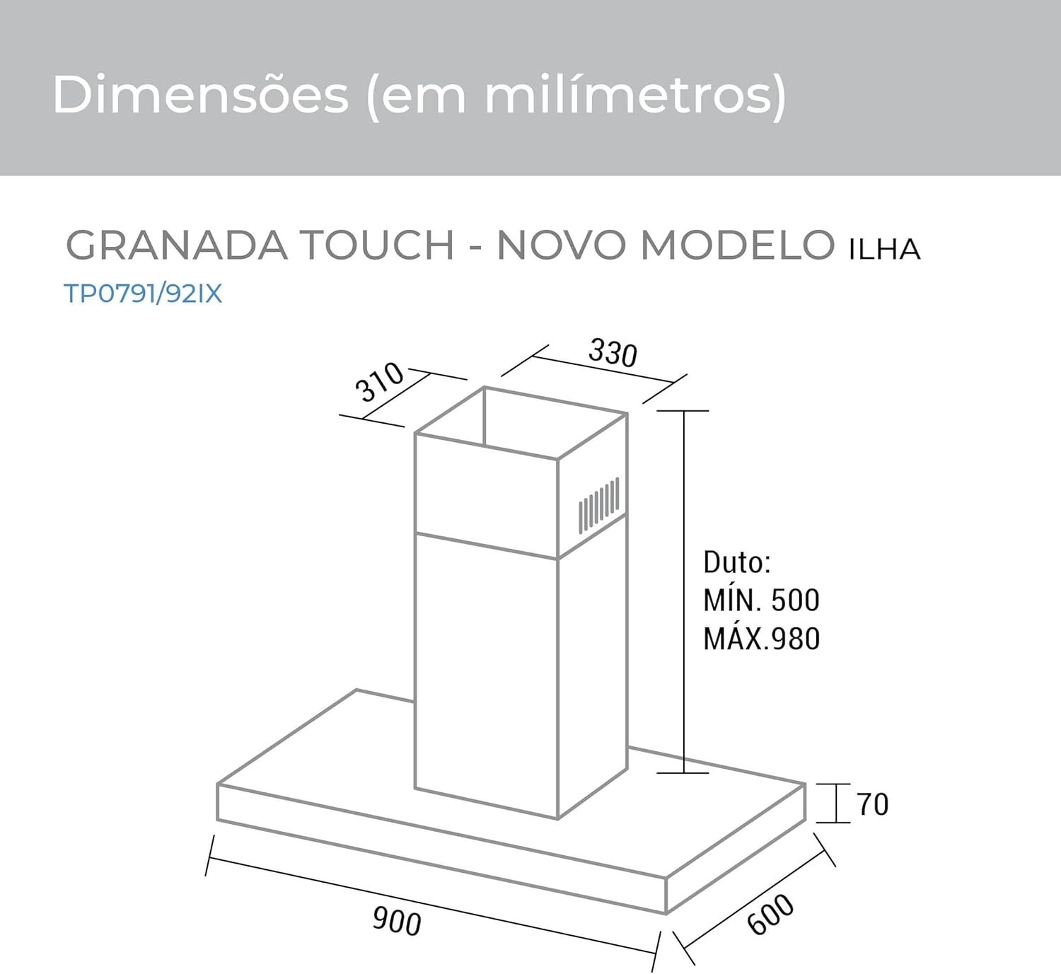 SUGGAR COIFA ILHA GRANADA INOX 90CM 110V TP0791IX