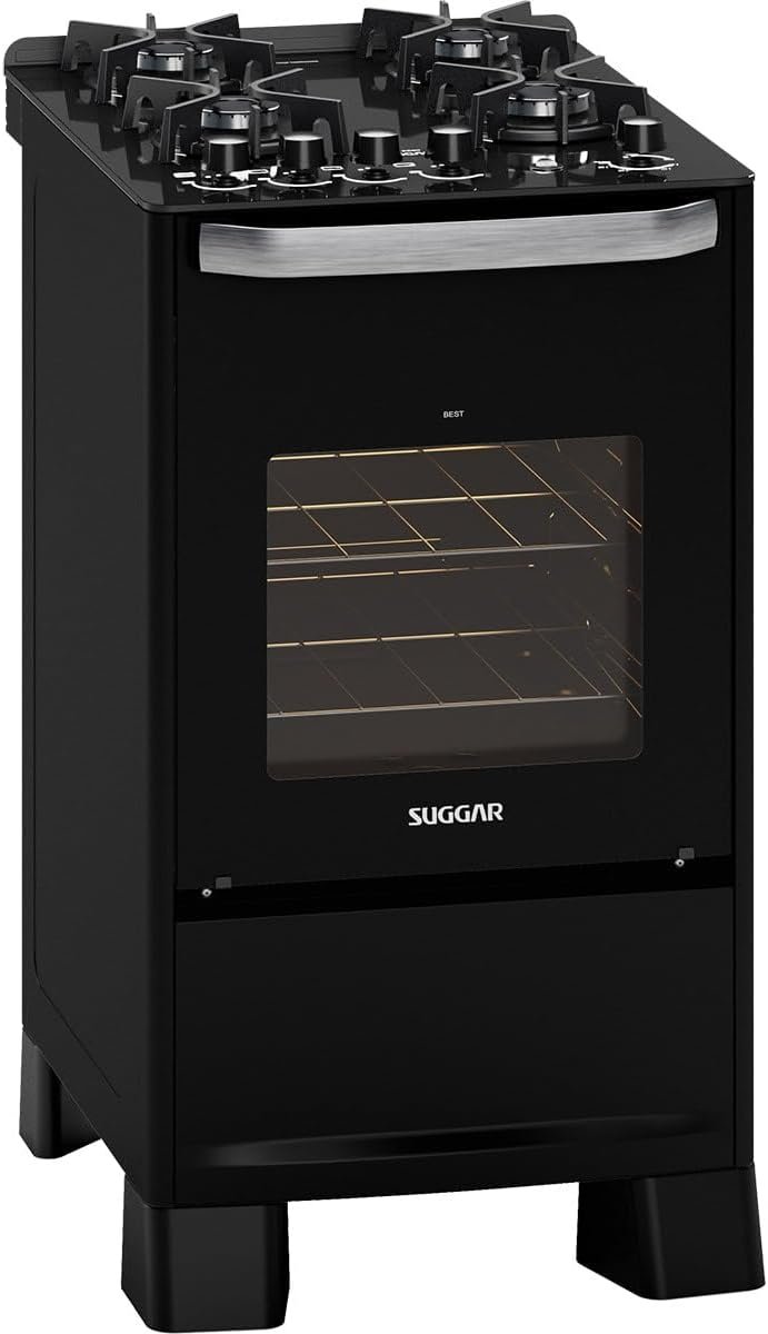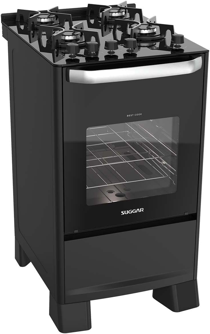 SUGGAR FOGÃO BEST COOK 4 BOCAS PRETO TREMPES DE FERRO FUNDIDO ACENDIMENTO AUTOMÁTICO FGV405PT