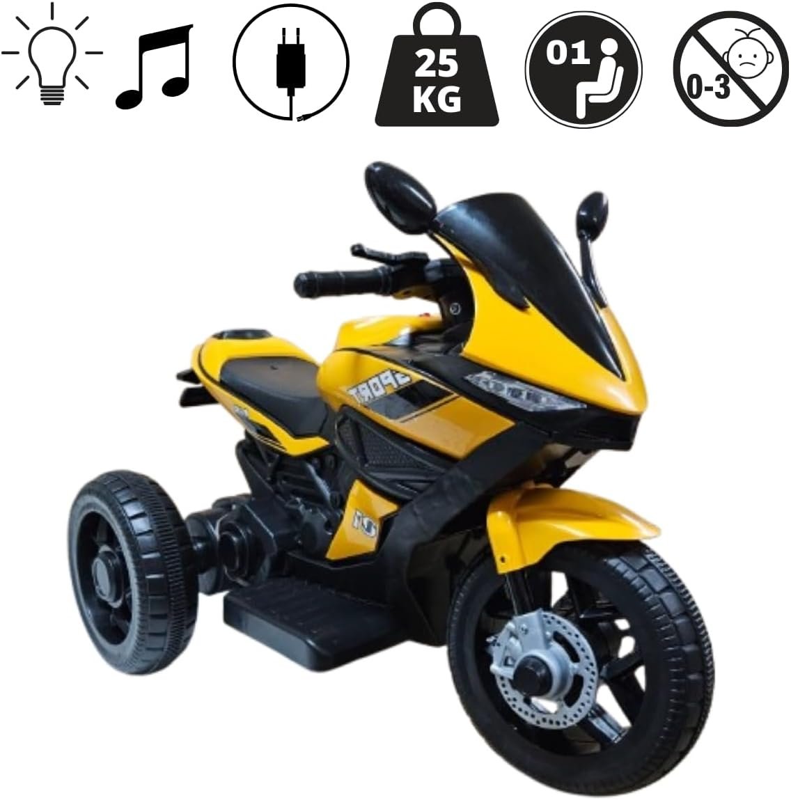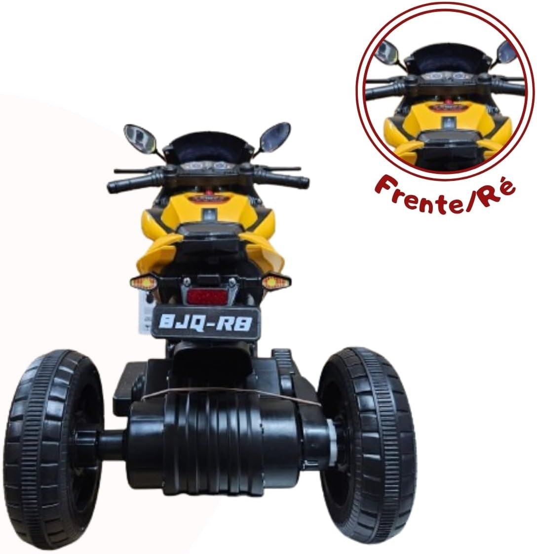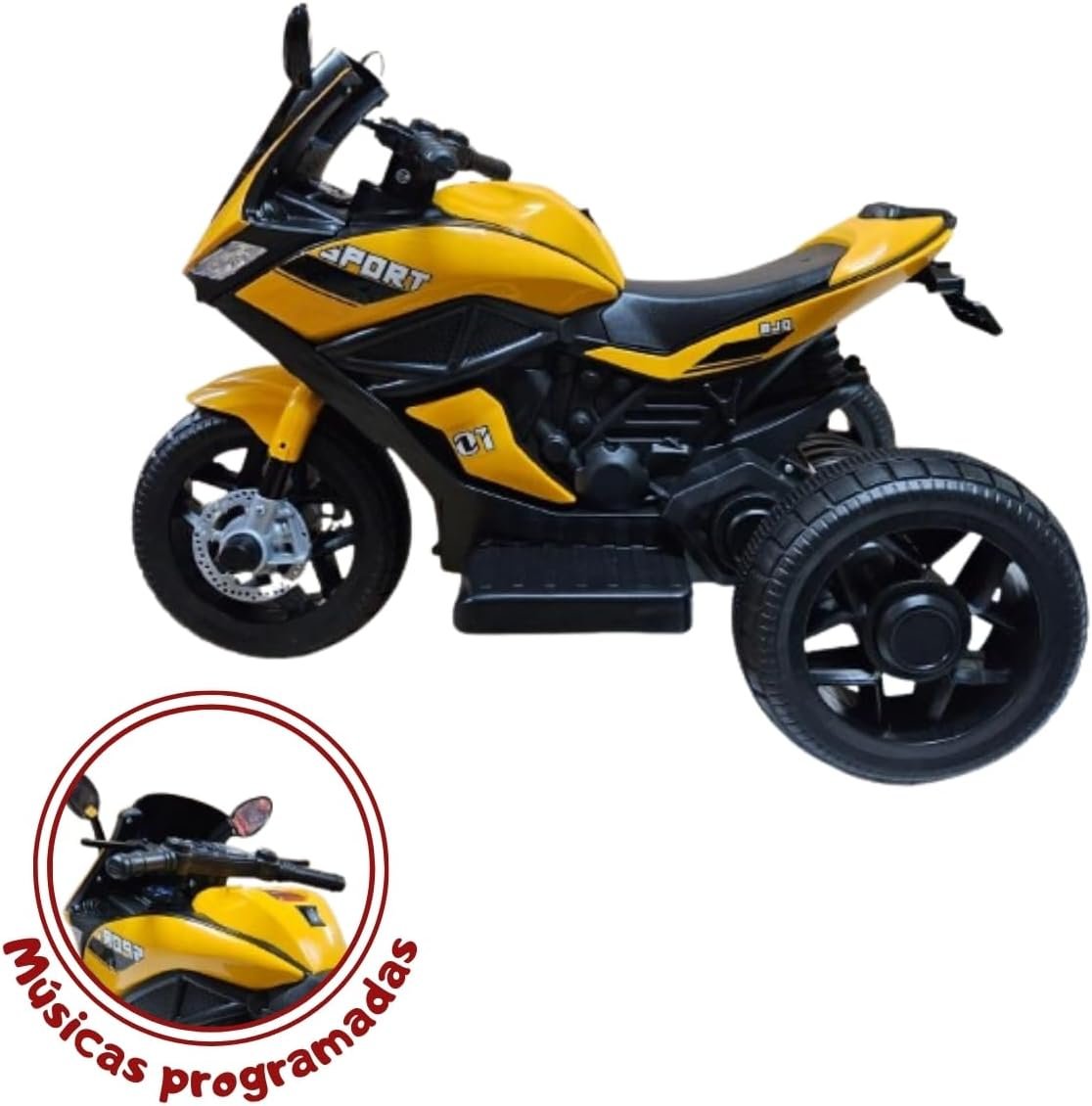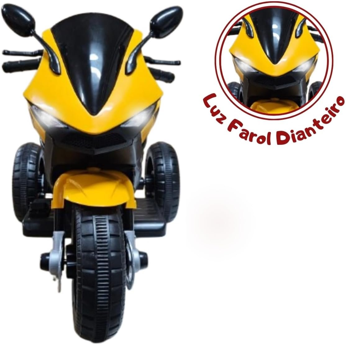 Super Mini Moto Elétrica Infantil 6v 03 Rodas com Som Música Rádio e Luz de Led (Amarelo)